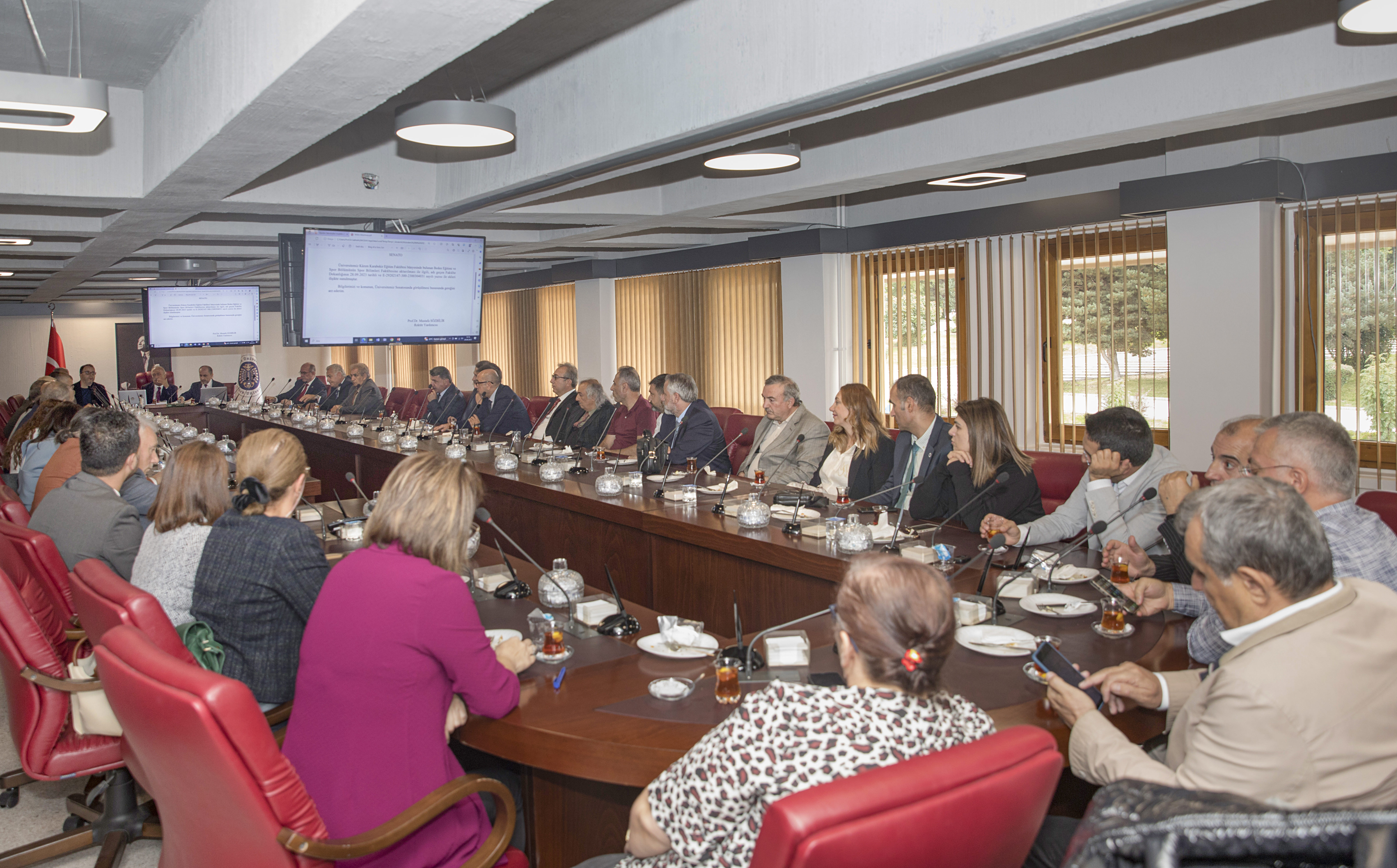 The meeting was held in the renovated Senate Hall, which now has a more contemporary appearance. It began under Rector Prof. Dr. Ömer Çomaklı's leadership, with participation from Senate and Board members. The meeting, during which agenda items were discussed and scheduled studies were evaluated, continued preparations for the upcoming academic term.