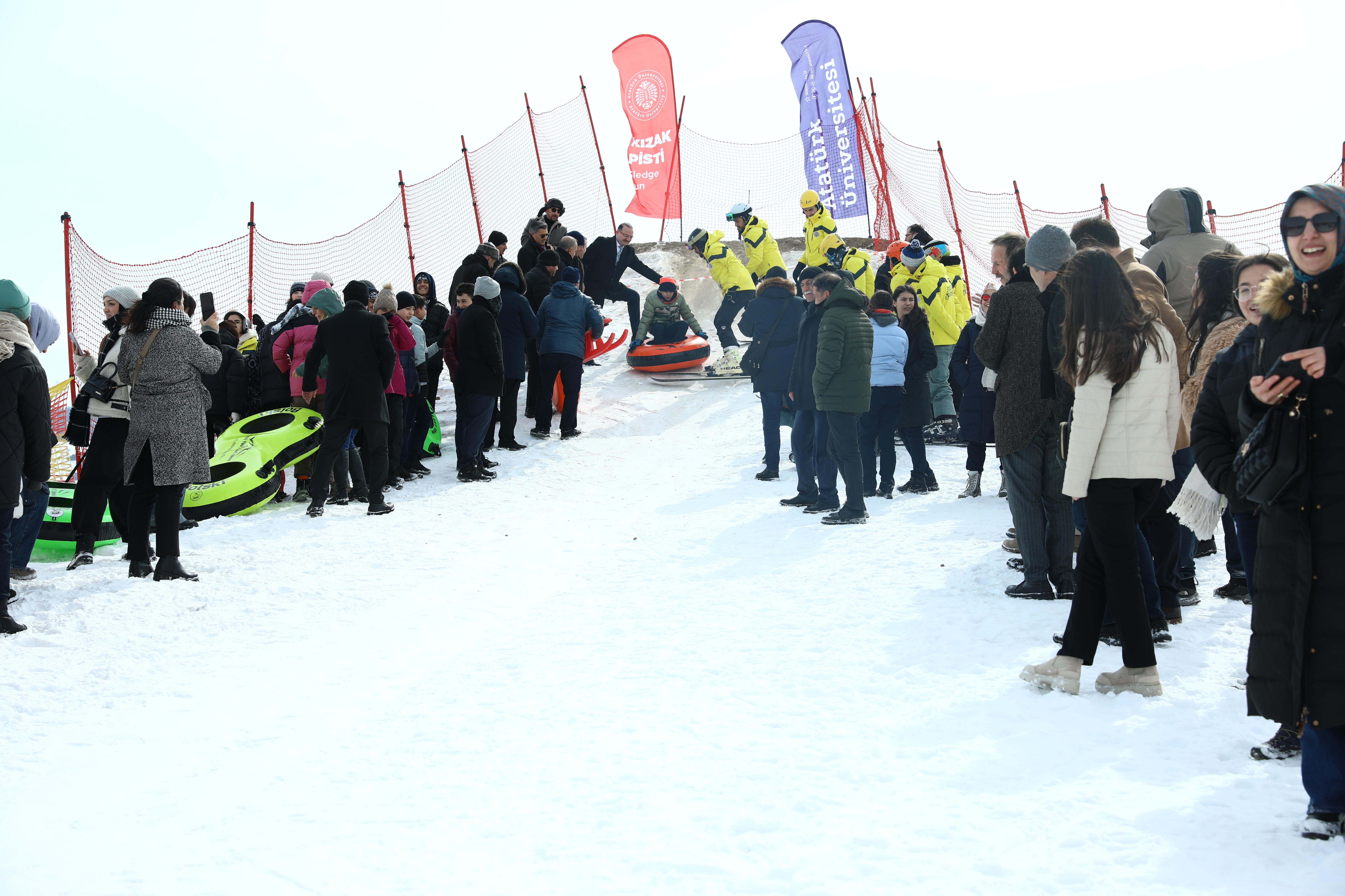 With the involvement of students and academicians, Atatürk University inaugurated the New Sled Track, which was constructed to revitalize cultural and athletic events. The track situated between the Faculty of Architecture and the Faculty of Law was the site of the toboggan event, which was characterized by vibrant scenes.