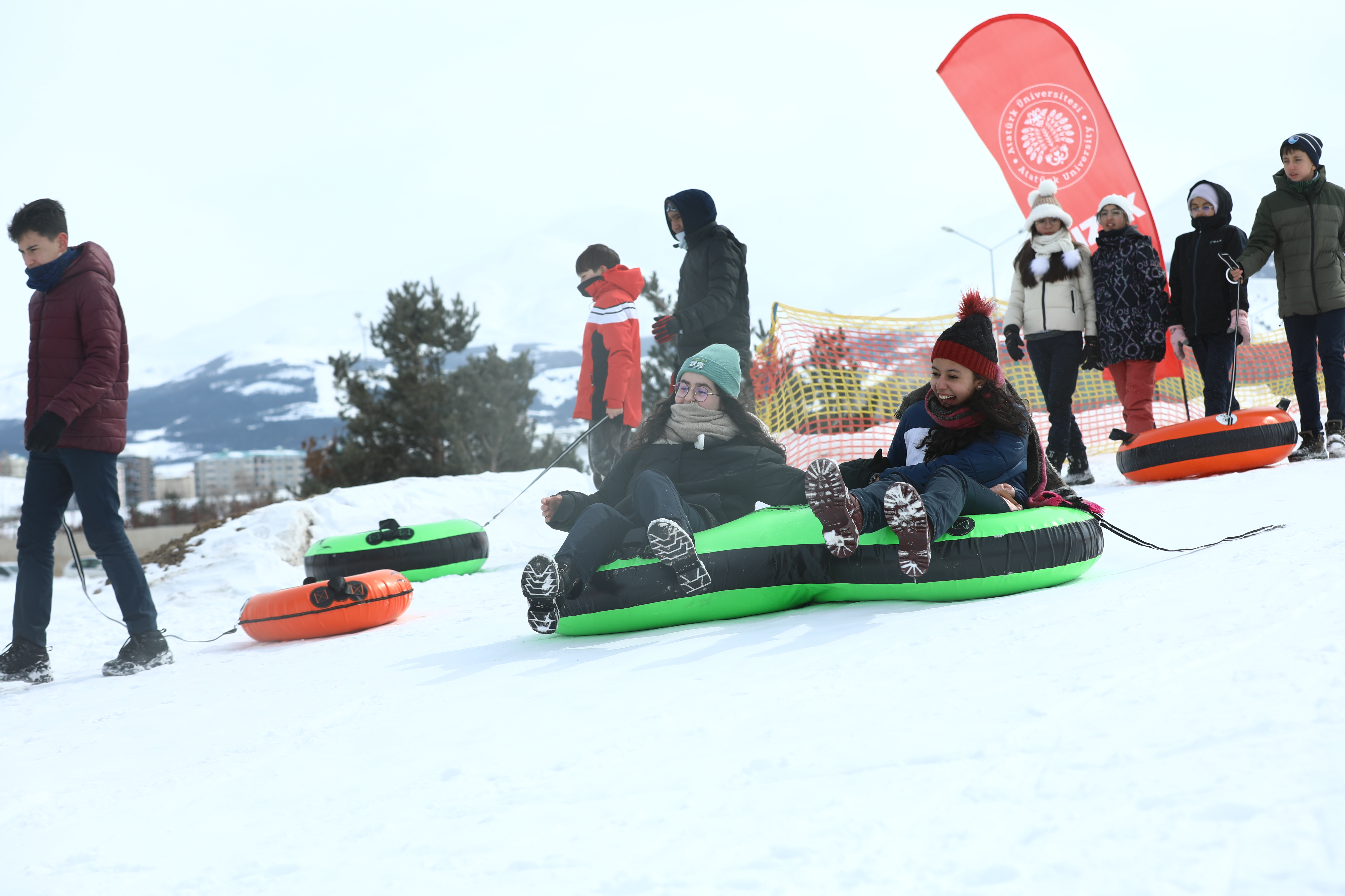 The opening event in which university members participated by sledging was greeted with great interest by Rector Prof. Dr. Ahmet Hacımüftüoğlu, vice rectors, general secretary, academicians, administrative staff, university sports club athletes, students, and citizens.