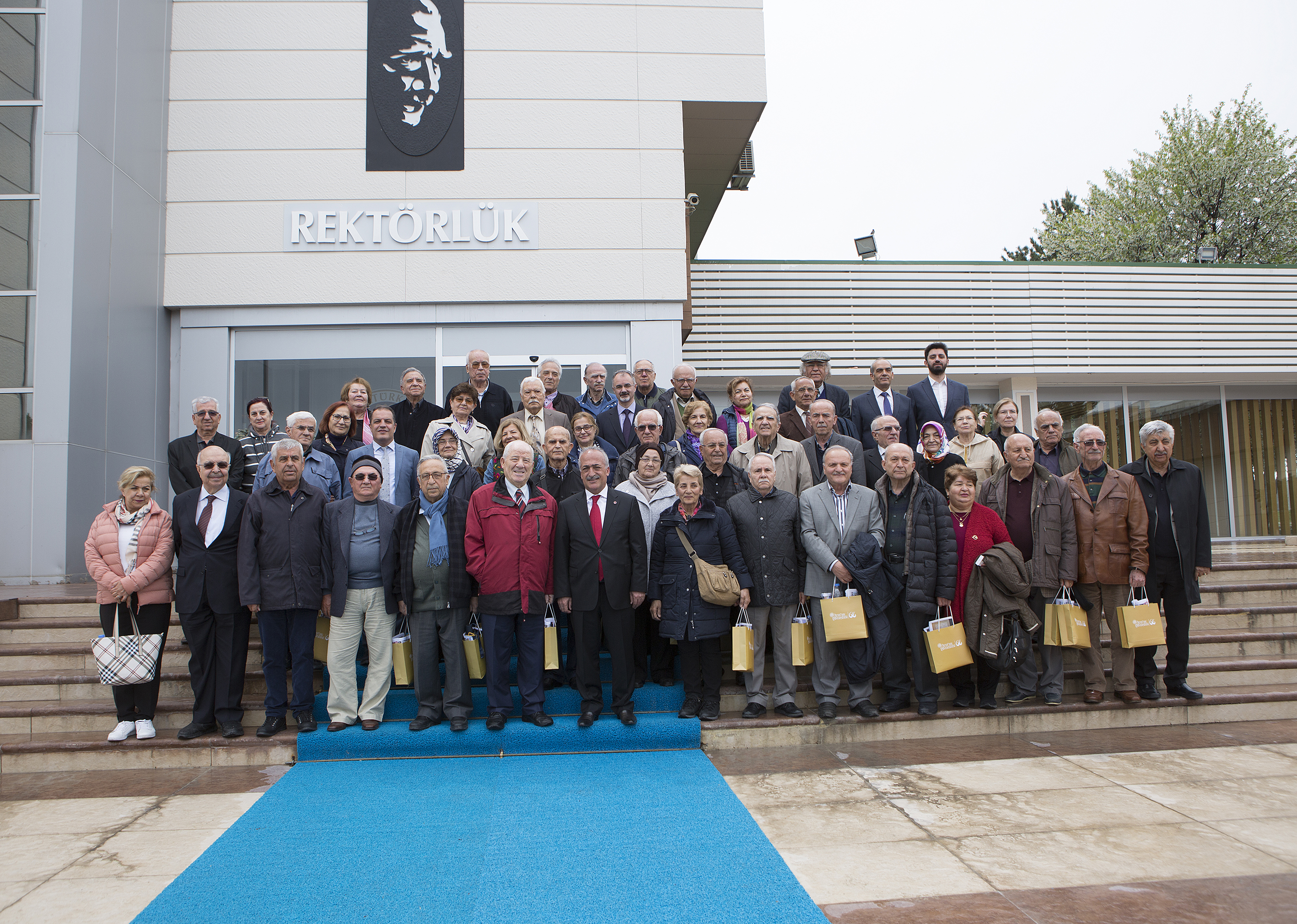 Atatürk University graduates have begun meeting with the undergraduates and those from different sections of the society within the framework of "Project for Campus Meetings". Within this scope, they met with 50 people graduated from Agricultural Faculty half century ago. But, they initially visited Atatürk University rector Prof.Dr. Ömer Çomaklı. Following the visit, they went to the Coordination Unit of Scientific Research Projects (BAP) and then back to Agricultural Faculty reliving their pupilage there.