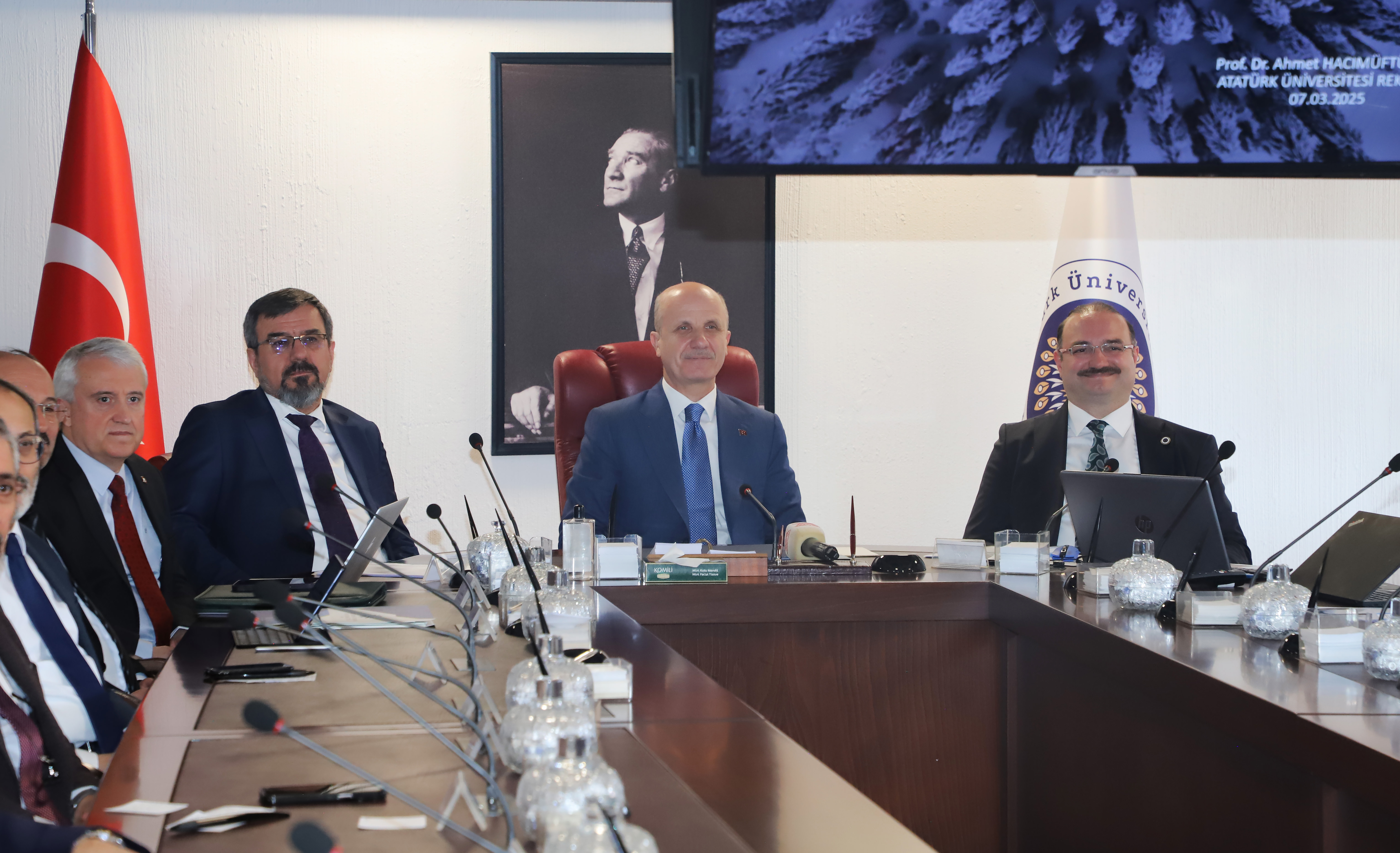 Prof. Dr. Erol Özvar, President of the Higher Education Council (YÖK), visited Atatürk University as part of his engagements in Erzurum. The visit was attended by the rectors of 16 institutions, in addition to HEC President Özvar, HEC Deputy Prof Dr H Haldun Göktaş, and YÖK Executive Board Members Prof. Dr Naci Gündoğan and Prof Dr Erol Arcaklıoğlu. Regional cooperation, the future of higher education, and the synergy between universities were the subjects of productive discussions during the meeting. The visit hosted by Prof. Dr. Ahmet Hacımüftüoğlu, Rector of Atatürk University was attended by Prof. Dr. Bülent Çakmak, Rector of Erzurum Technical University, Prof. Dr. Hüsnü Kapu, Rector of Kars Kafkas University, Prof. Dr. Akın Levent, Rector of Erzincan Binali Yıldırım University, Prof. Dr. Ahmet Hakkı Turabi, Rector of Amasya University, Prof. Dr. Mustafa Sıtkı Bilgin, Rector of Artvin Çoruh University, Prof. Dr. Abdulhalik Karabulut, Rector of Ağrı İbrahim Çeçen University, Prof. Dr. Necmettin Elmastaş, Rector of Bitlis Eren University, Prof. Dr. Prof. Dr. Necmettin Elmastaş, Bingöl University Rector Prof. Dr. Erdal Çelik, Ardahan University Rector Prof. Dr. Mehmet Biber, Iğdır University Rector Prof. Dr. Mehmet Hakkı Alma, Tunceli Munzur University Rector Prof. Dr. Kenan Peker, Muş Alparslan University Rector Prof. Prof. Dr. Mustafa Alıcan, Bayburt University Rector Prof. Dr. Mutlu Türkmen, Gumushane University Rector Prof. Dr. Halil İbrahim Zeybek, Gaziantep Islamic Science and Technology University Rector Prof. Dr. Şehmus Demir attended the Coordination Meeting of Higher Education Council Regional Universities. From Airport to Senate Meeting After the welcoming ceremony at Erzurum Airport, YÖK President Özvar attended the Senate Meeting of Atatürk University and made a speech emphasising the importance of the university in the region and in Turkey. Providing detailed information about the development of the university and the strategic plans of YÖK, Özvar drew attention to the strong infrastructure of Atatürk University in the field of education and research, the meaning it carries for the higher education of the country and the mission it undertakes. Youth Meeting Event In the second stage of the visit, Higher Education Council President Prof. Dr. Erol Özvar, Erzurum Governor Mustafa Çiftçi, Erzurum Metropolitan Municipality Mayor Mehmet Sekmen, Rector Prof. Dr. Ahmet Hacımüftüoğlu met with Atatürk University students. In the Youth Meeting event held in the historical Müceldili Mansion, President Özvar, who had fruitful conversations with the students, listened to the thoughts of the young people and gave them encouraging messages for the future. Sharing the same table with the students in the sahur programme, Özvar expressed that he experienced the spiritual peace of this moment. Visit to Science Communication Office and High Technology Centres On the next day of the visit, YÖK President Özvar closely followed the scientific development process of the universities. Firstly, he visited the Science Communication Office established at Atatürk University. Coordinator of the Office Dr. Lecturer. He received detailed information about the projects initiated to bring scientific studies to the public, accompanied by the presentation made by Yusuf Bayraktar, Coordinator of the Office. HEC President Özvar stated that such an application coincides with the vision of HEC and said that these projects will set an example for other universities. Özvar said, ‘It is very valuable to bring science together with the public and to enable children to meet science at an early age. Atatürk University is taking pioneering steps in this field.’ Later, YÖK President Özvar visited Ata Ice Museum and Eastern Anatolia High Technology Application and Research Centre (DAYTAM) and examined the studies carried out in high technology laboratories in these centres. Özvar visited the Works of Ice exhibition at Ata Ice Museum and received information from Prof. Dr. Mustafa Bulat, the unit coordinator, about the artistic and scientific studies carried out here. At DAYTAM, he came together with Assoc. Prof. Dr. Bilal Nişancı and his team and exchanged views on the working areas of the laboratories that contain high technology. Joint Studies with Regional Universities At the end of the visit, YÖK President Prof. Dr. Erol Özvar came together with the rectors of the regional universities. At the meeting held in Atatürk University Senate Room, he made important statements about regional development and cooperation between universities. Özvar said, ‘By establishing a strong cooperation between our universities, we can ensure that our higher education system works more efficiently. Stating that universities should develop joint projects by combining their strengths, Özvar stated that this will contribute to regional development and a stronger structure of universities. Collaborations with Regional Universities At the end of the visit, YÖK President Prof. Dr. Erol Özvar came together with the rectors of the regional universities. At the meeting held in Atatürk University Senate Room, he made important statements about regional development and cooperation between universities. Özvar said, ‘By establishing a strong cooperation between our universities, we can ensure that our higher education system works more efficiently. Stating that universities should develop joint projects by combining their strengths, Özvar stated that this will contribute to regional development and a stronger structure of universities. Vision Meetings and Higher Education System Referring to the 2030 Vision Meetings, which were initiated last year and completed in Istanbul in February, President Özvar said that these meetings constitute an important basis for the future of the higher education system. Özvar stated that as YÖK, they aim to make higher education