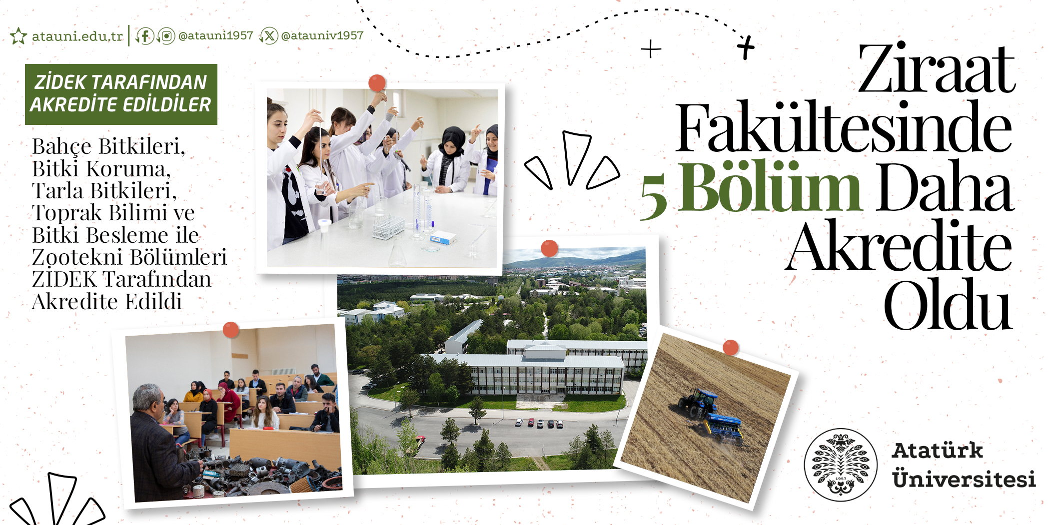 Atatürk University has achieved another important success in line with its goal of increasing the quality of education and training graduates at international standards. The Departments of Horticulture, Plant Protection, Field Crops, Soil Science and Plant Nutrition and Zootechnics of the Faculty of Agriculture were accredited for the first time by the Association for Evaluation and Accreditation of Agricultural Faculties Education Programmes (ZİDEK). With this success, the total number of accredited programmes of the university reached 68.