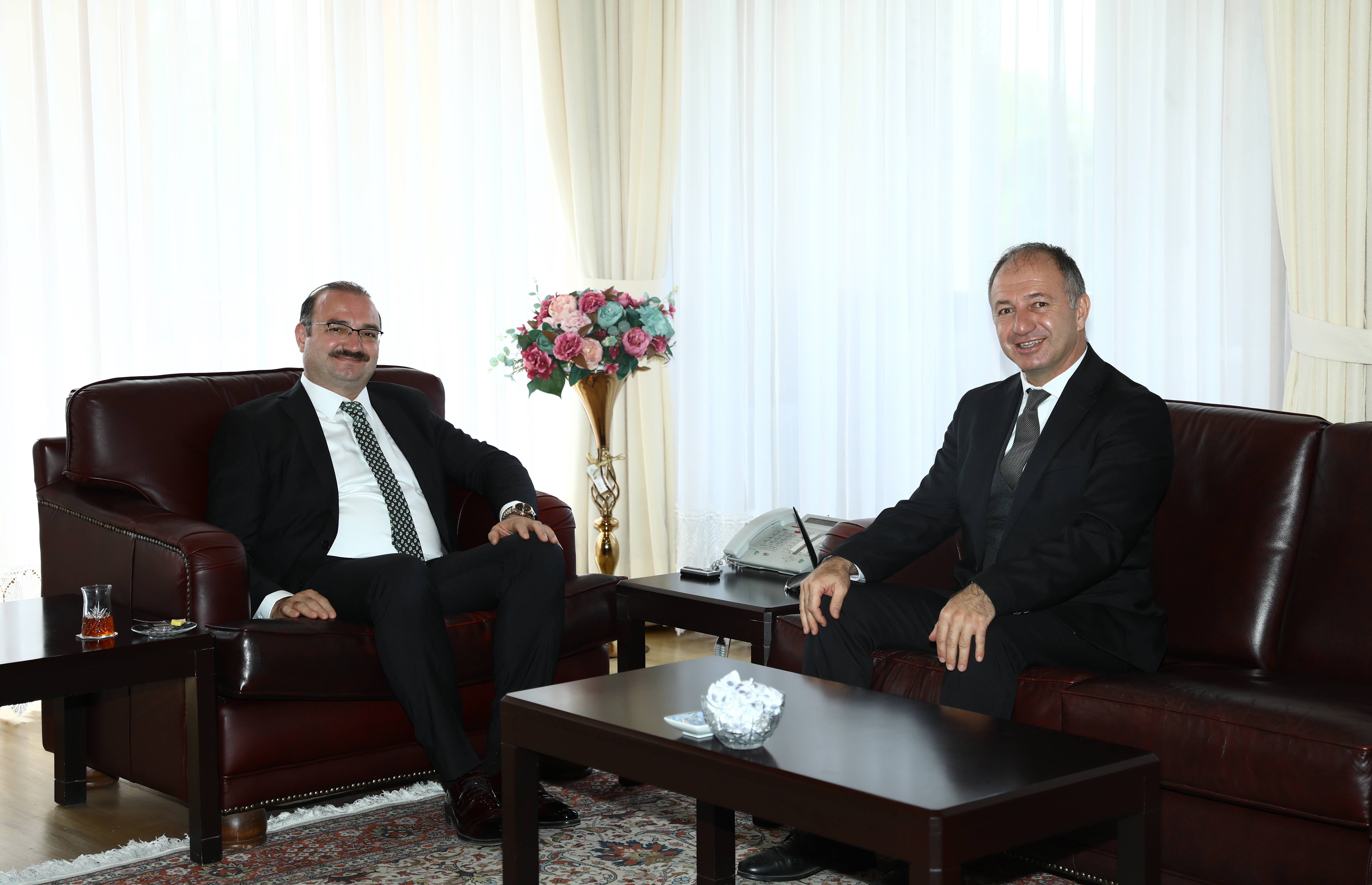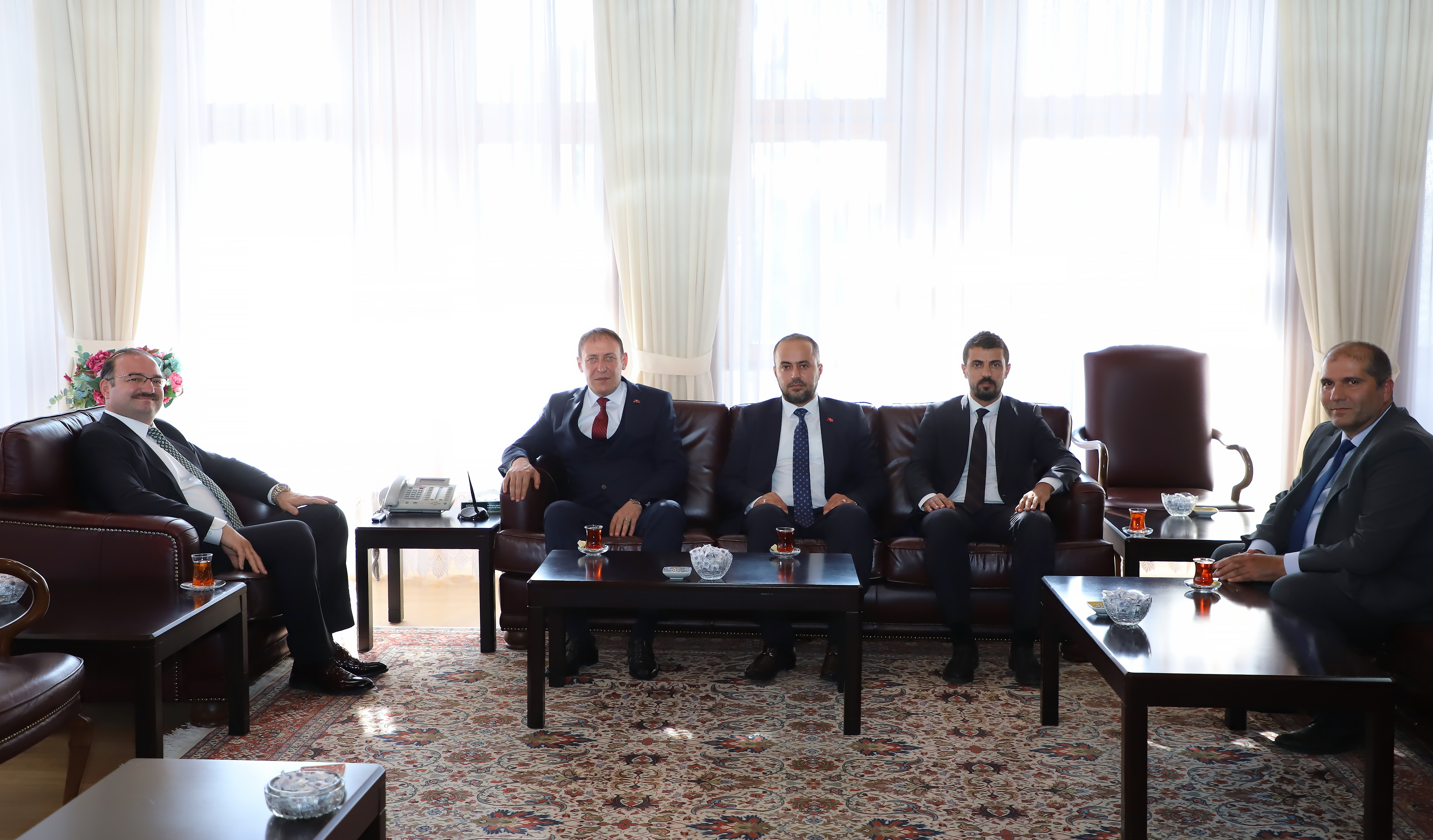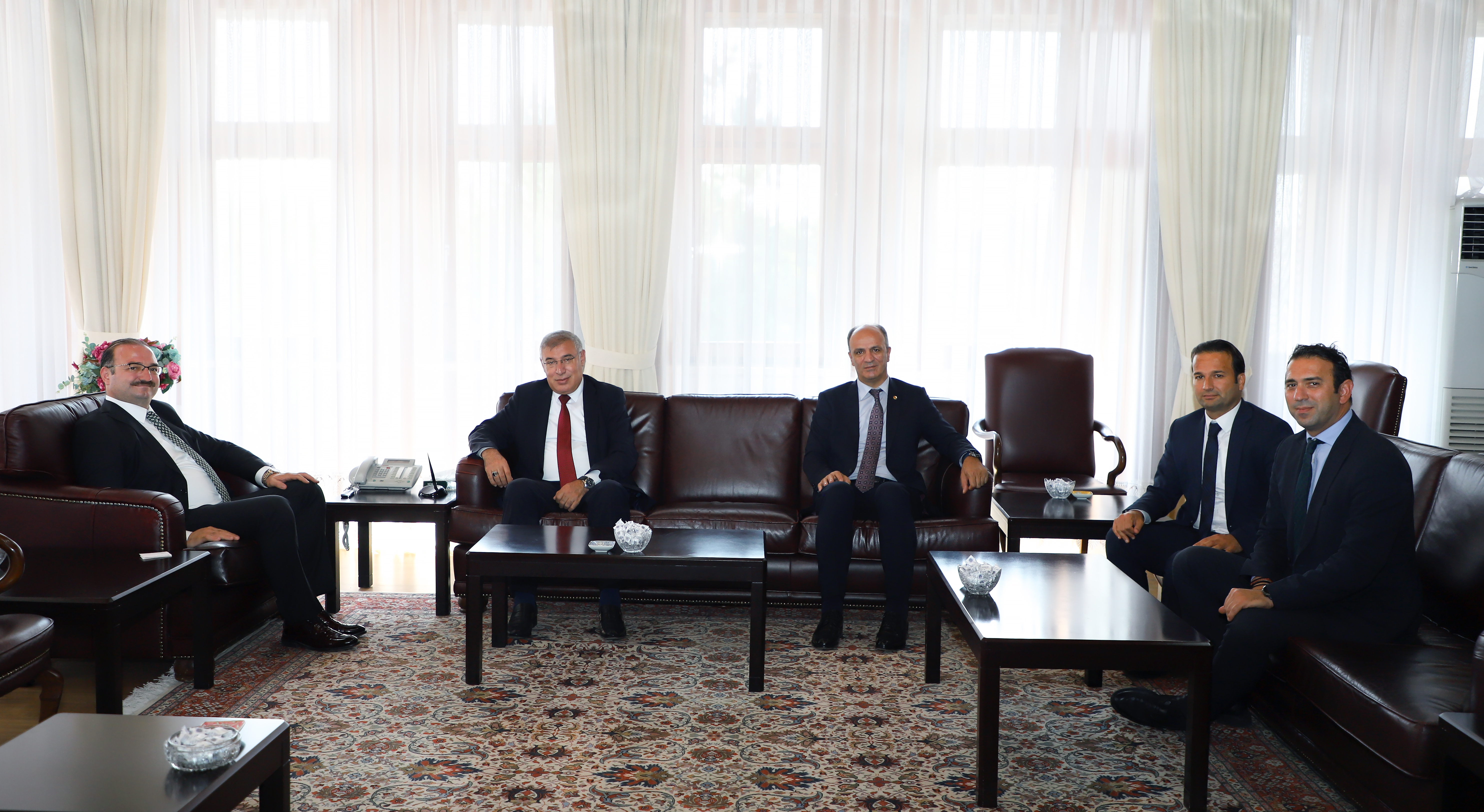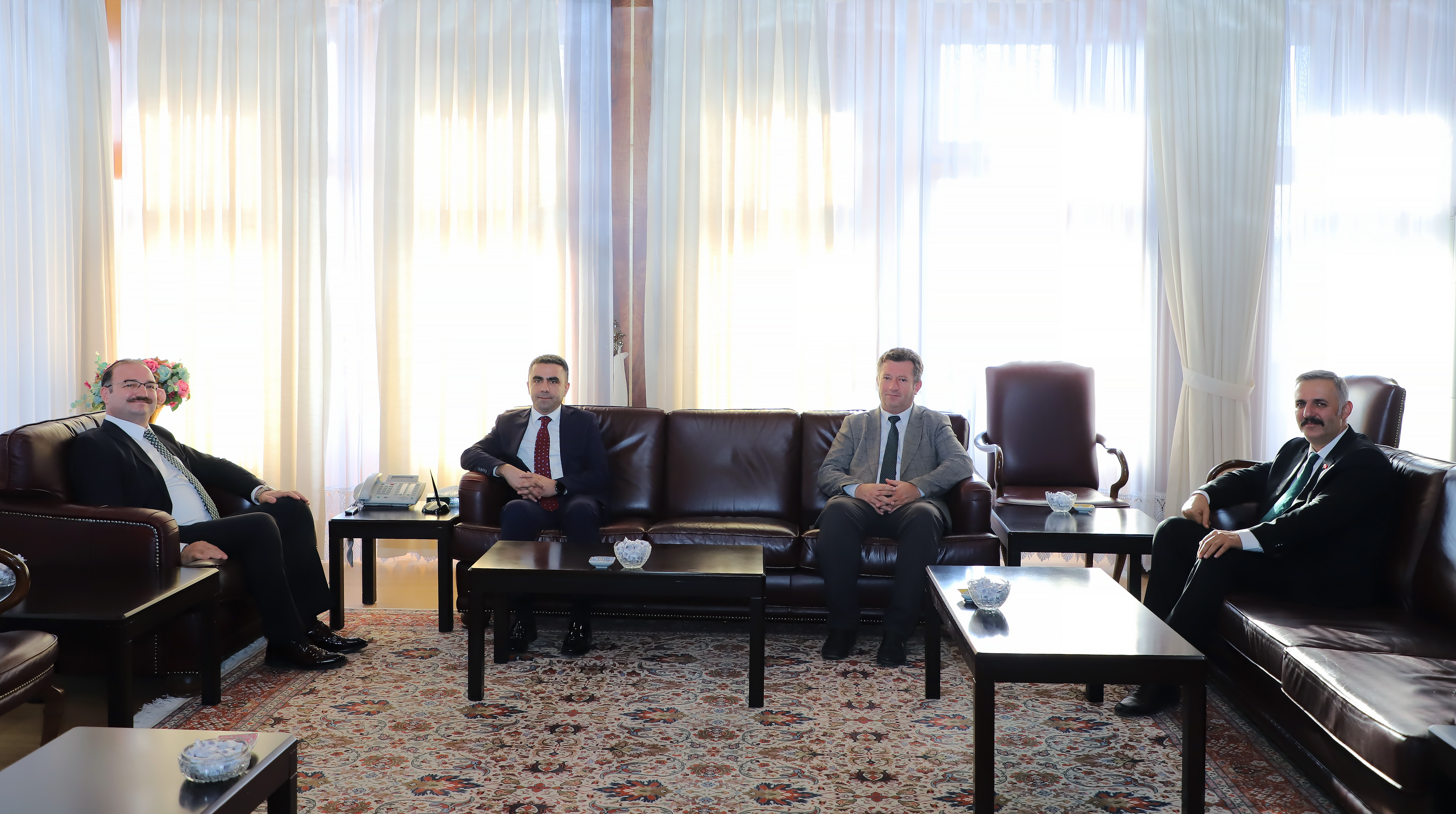 The team of Nationalist Movement Party (MHP) Chairman Chief Advisor Prof. Dr. Hanifi Macit, Provincial Director of Youth and Sports Levent Çakmur, Provincial Director of Agriculture and Forestry Alpaslan Kenger, and Halkbank Regional Manager Yener Işıldak visited Atatürk University rector Prof. Dr. Ahmet Hacımüftüoğlu in his office and wished him success in his new role. Possible collaborations and joint projects with the university in a variety of disciplines were deliberated during the visit.