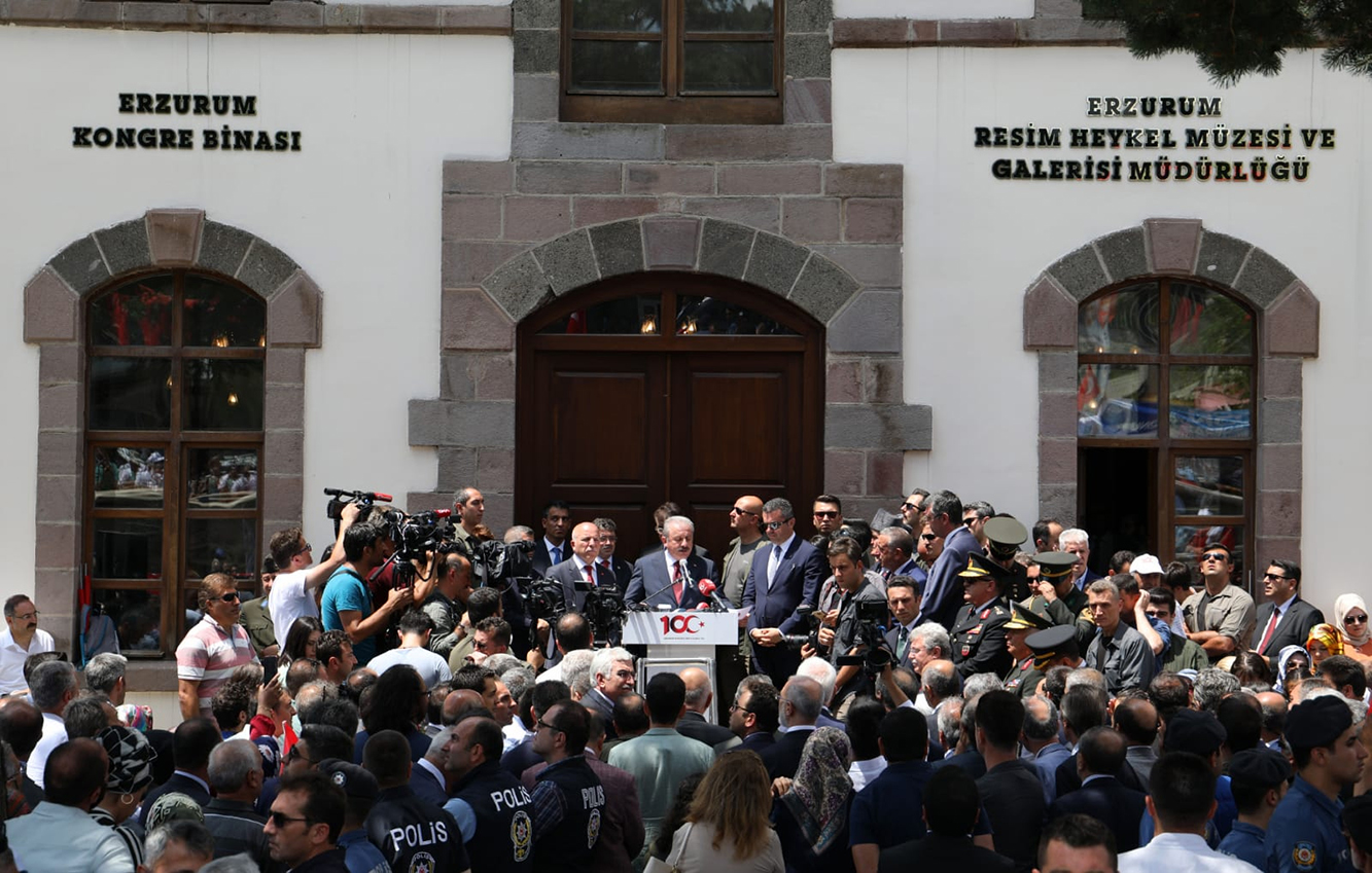 TBMM Başkanı Prof. Dr. Mustafa Şentop ve Vali Okay Memiş’in kongre binası önünde günün anlam ve önemine binaen yaptıkları konuşmaların ardından, Gazi Mustafa Kemal Atatürk’ün faytonla Erzurum Kongresine gelerek Kazım Karabekir Paşa ile görüşmesi ve akabinde Tarihi Kongre Binasındaki delegelere seslenişi temsili olarak canlandırıldı. Temsil esnasında 100 yıl öncesine giden katılımcılar duygu dolu anlar yaşadı.