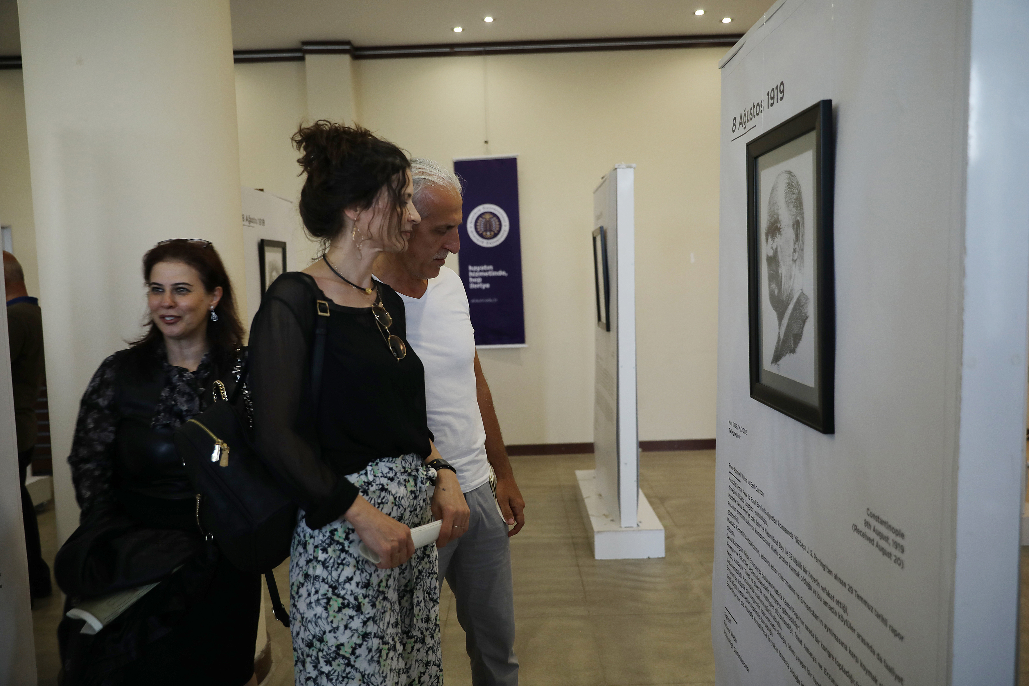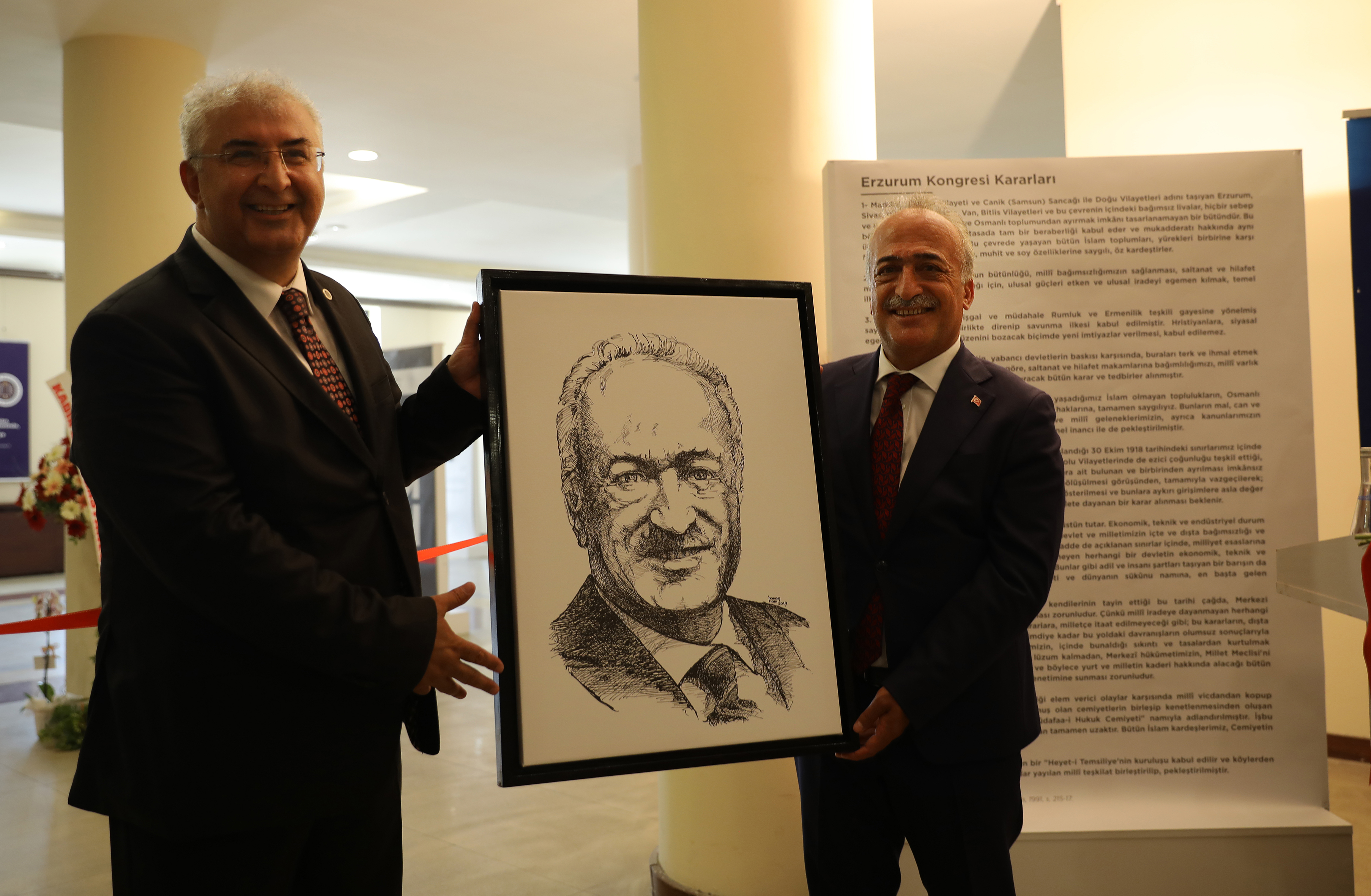 Atatürk Üniversitesi Tıp Fakültesi Öğretim Üyesi Prof. Dr. Hakan Hadi Kadıoğlu’nun düzenlediği sergi, Mustafa Kemal Paşa’nın Erzurum Kongresi süresince Erzurum’da kaldığı 57 günün her biri için farklı bir Atatürk portresini barındırıyor. Tamamının kendi çizimlerinden meydana geldiği sergide Kadıoğlu, Rektör Çomaklı’ya da kendisinin çizdiği karakalem porte çalışmasını hediye etti.