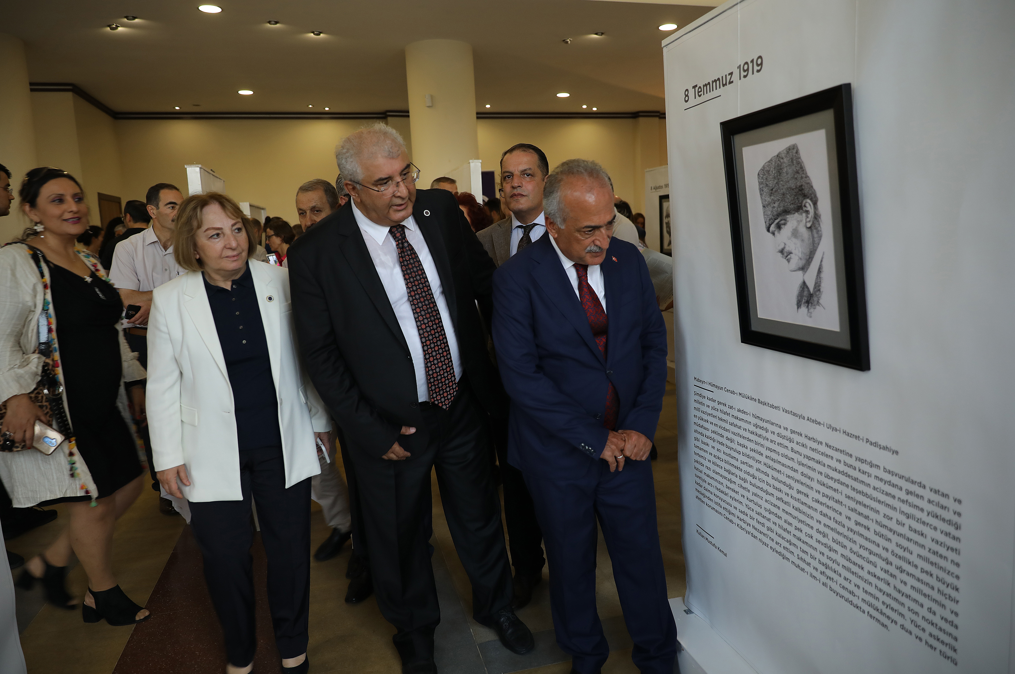 Millî Mücadele ve Erzurum Kongresinin 100. yıl dönümü etkinlikleri gün boyunca devam etti. Bu kapsamda Atatürk Üniversitesi tarafından organize edilen, “Vatanın Bağrında Elli Yedi Gün Ya İstiklal Ya Ölüm” isimli sergiye katılmak üzere Nenehatun Kültür Merkezine geçen Rektör Prof. Dr. Ömer Çomaklı, burada serginin açılışını gerçekleştirdi.