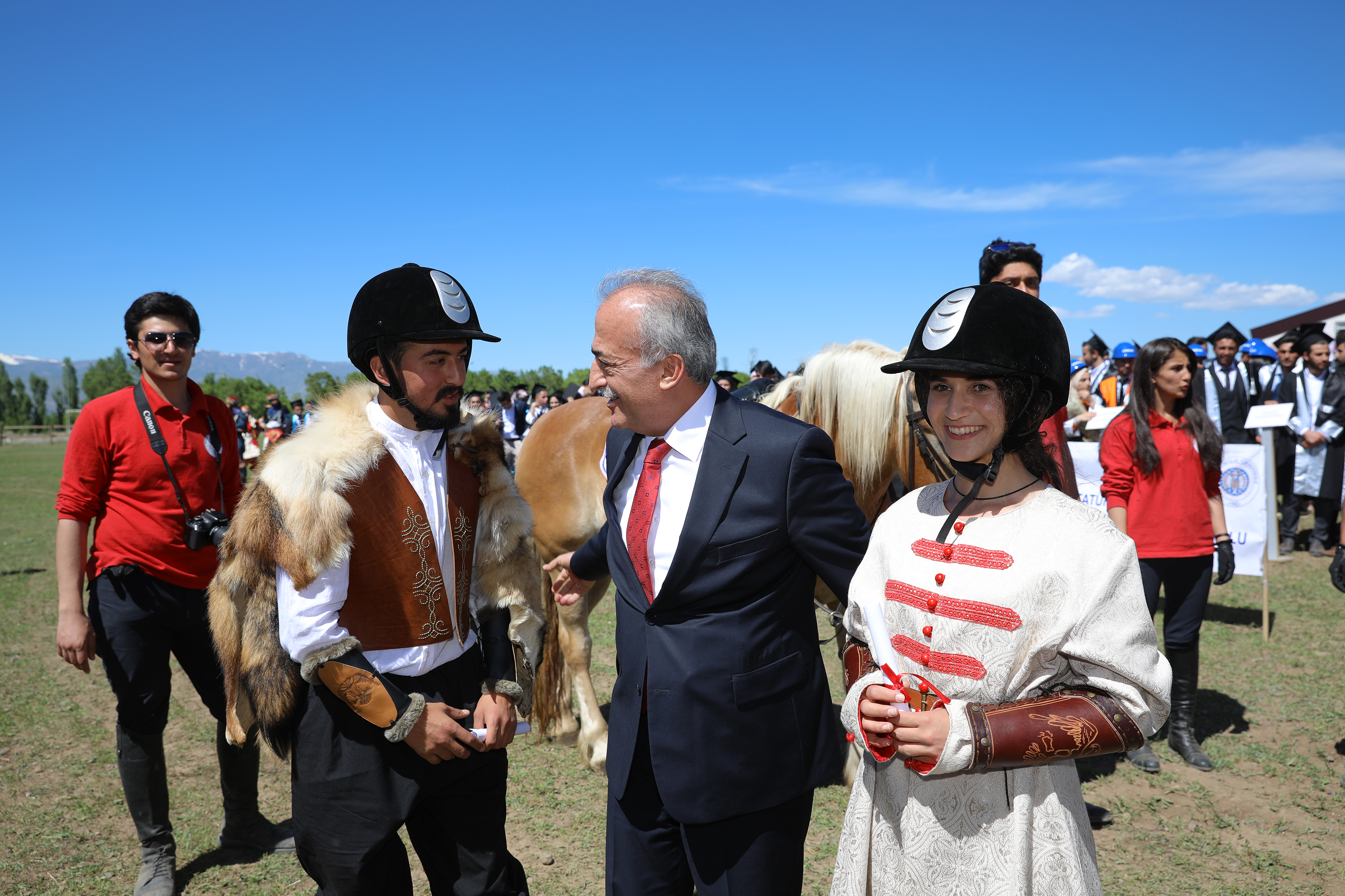 Atatürk Üniversitesi kampüsünde yer alan Erzurum MYO ATAY Binicilik ve Hippoterapi Merkezinde düzenlenen Atlı Mezuniyet Töreninde 21 bölüm ve 44 programdan 600 öğrenci mezuniyet belgelerini aldı.