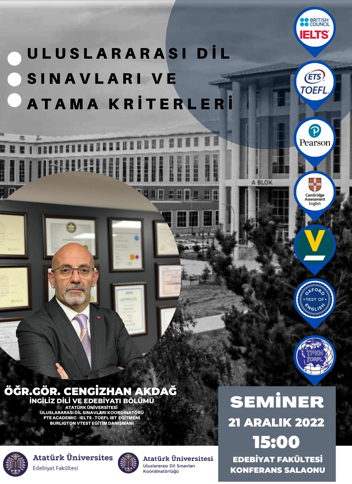 - Seminer:"Uluslararası Dil Sınavları ve Atama Kriterleri"