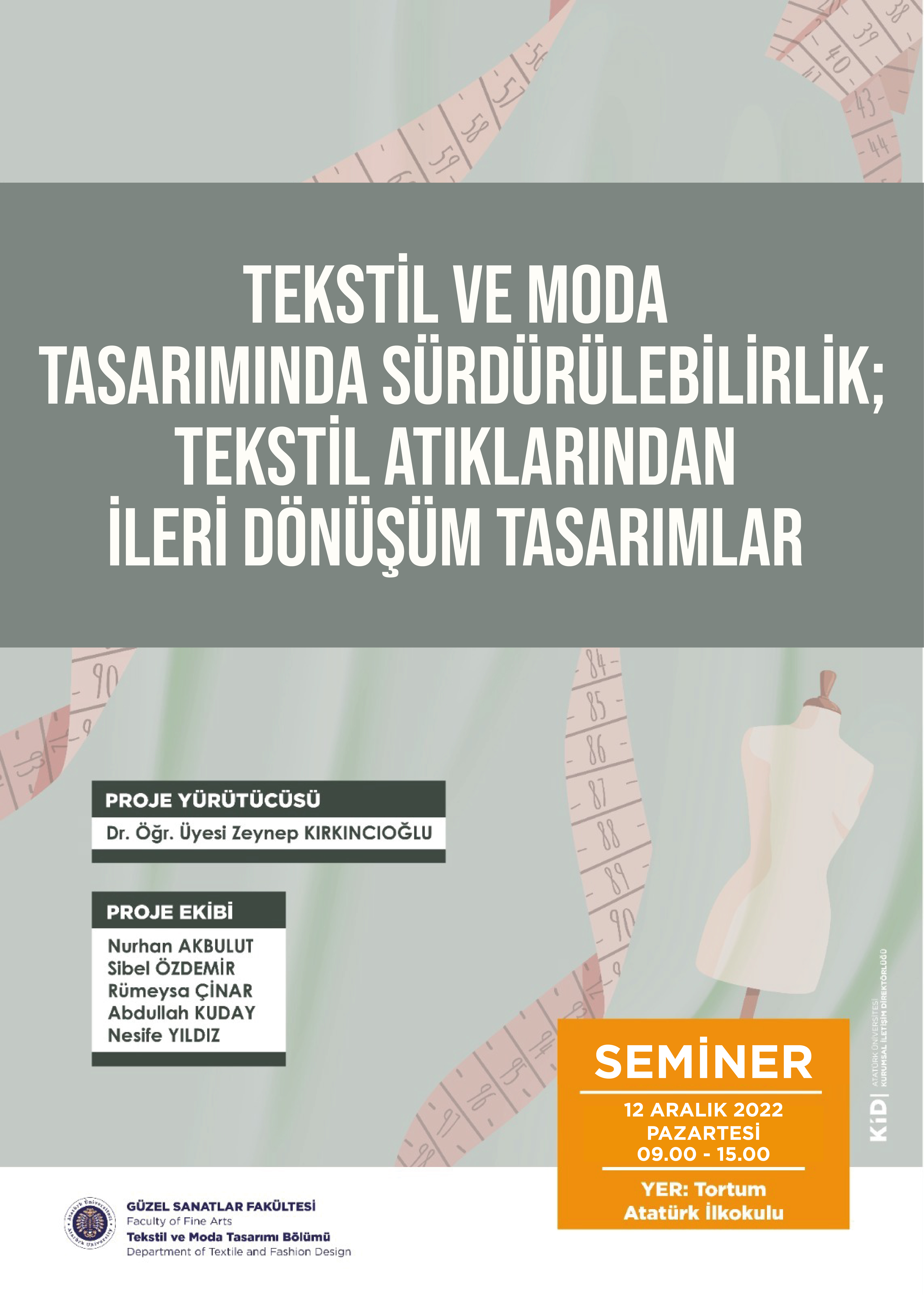 - Araştırmaya Başlangıç Destek Projesi:"Tekstil ve Moda Tasarımında Sürdürülebilirlik;Tekstil Atıklarından İleridönüşüm Tasarımlar"