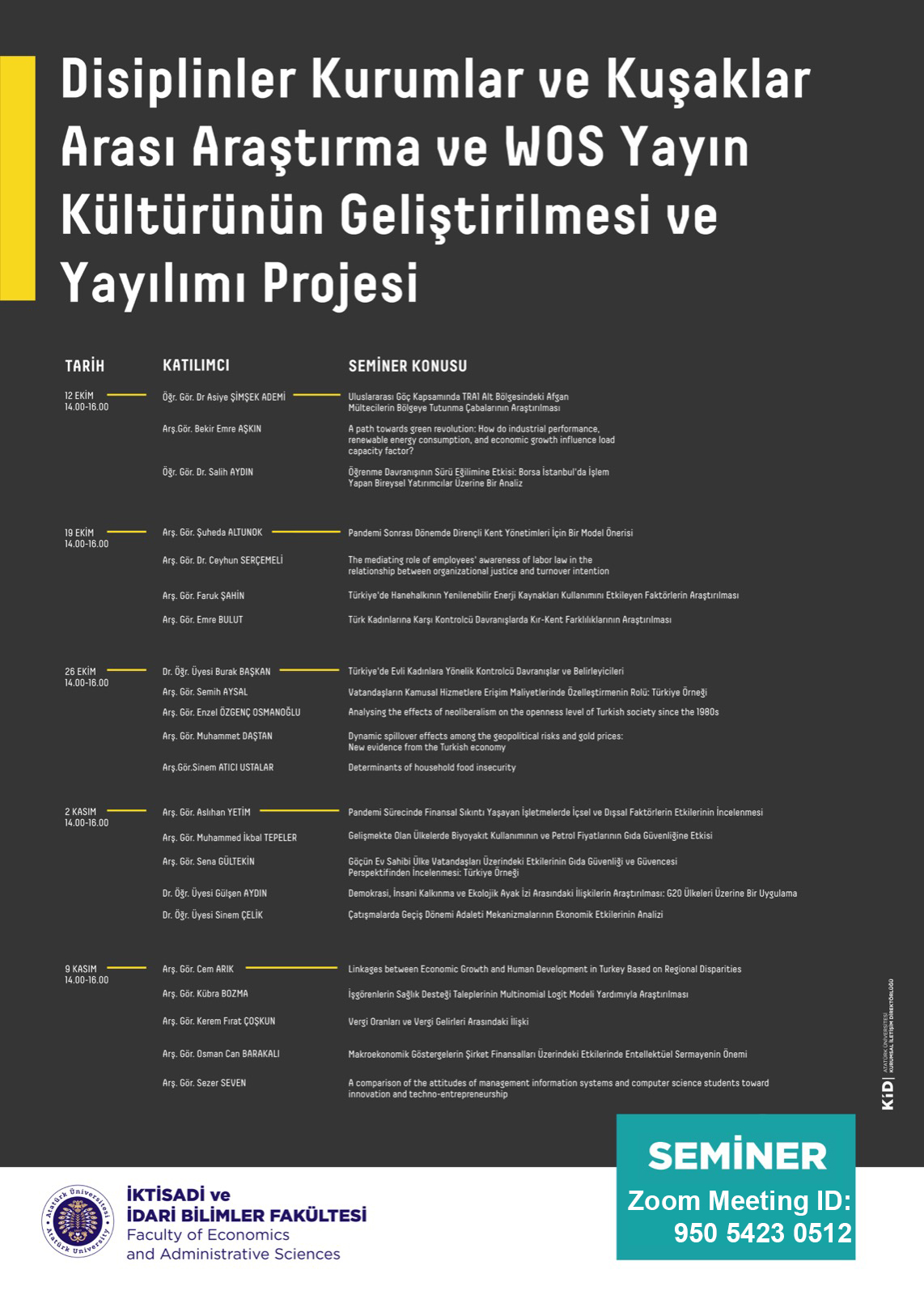 - Disiplinler Kurumlar ve Kuşaklar Arası Araştırma ve Wos Yayın Kültürünün Geliştirilmesi ve Yayılımı Projesi