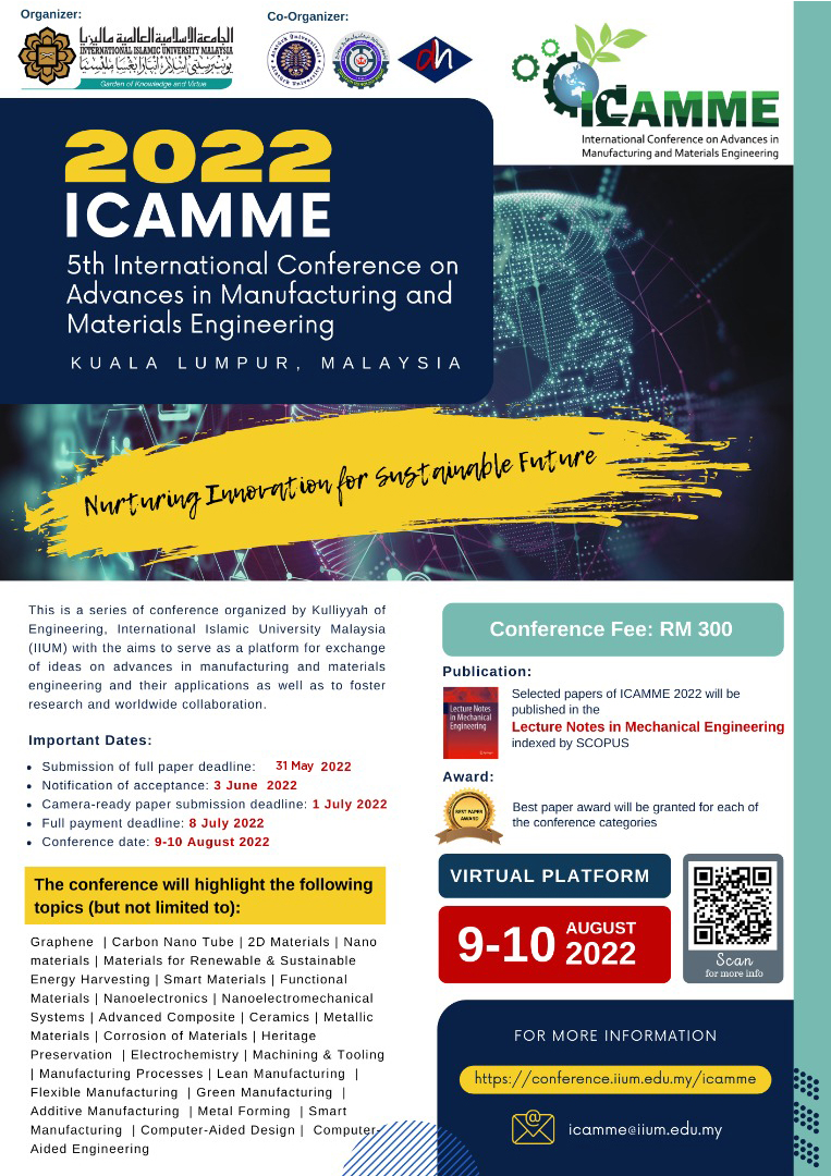 • 5th International Conference on Advances in Manufacturing and Materials Engineering (ICAMME) 2022