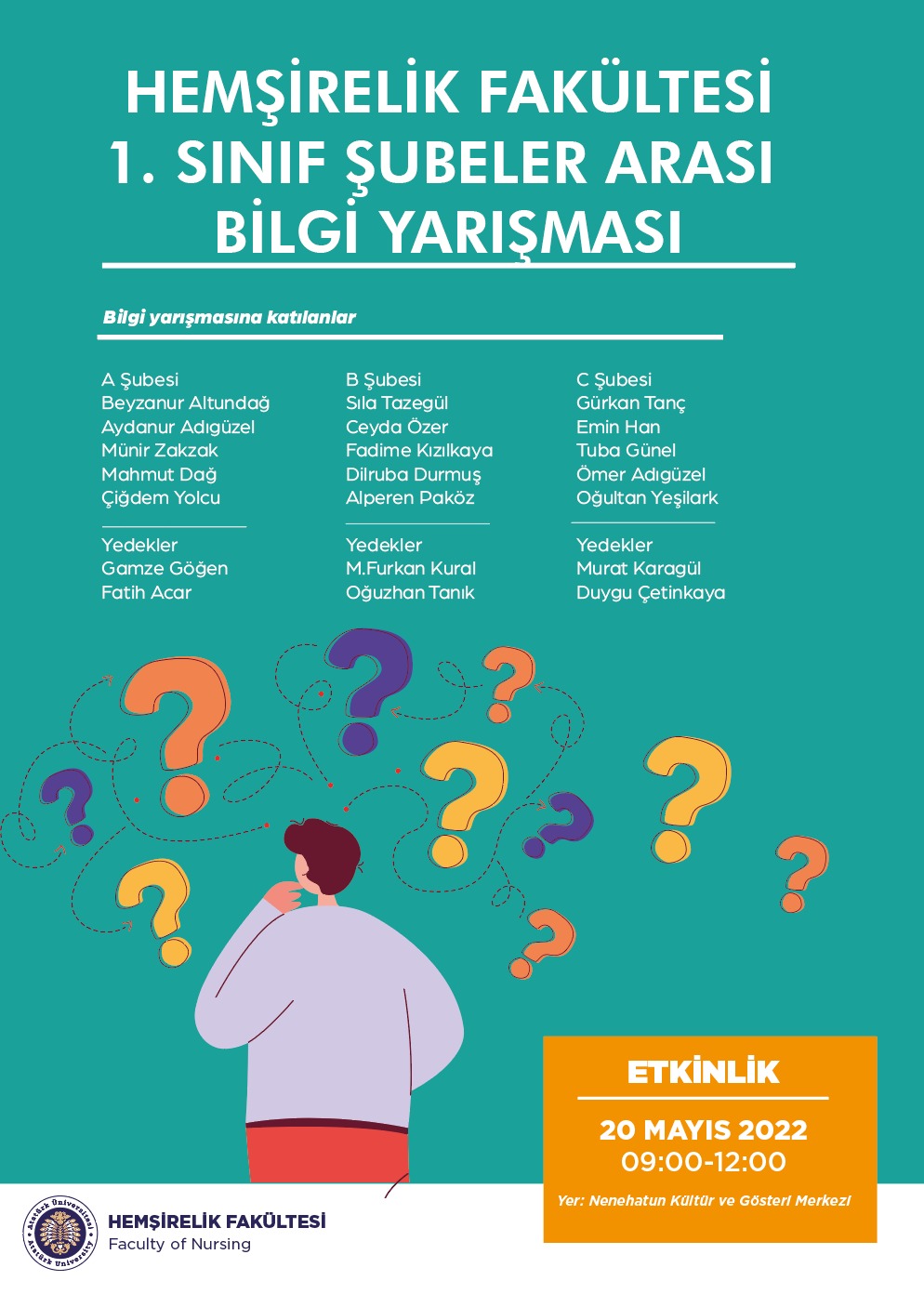- Hemşirelik Fakültesi 1. Sınıf Şubeler Arası Bilgi Yarışması