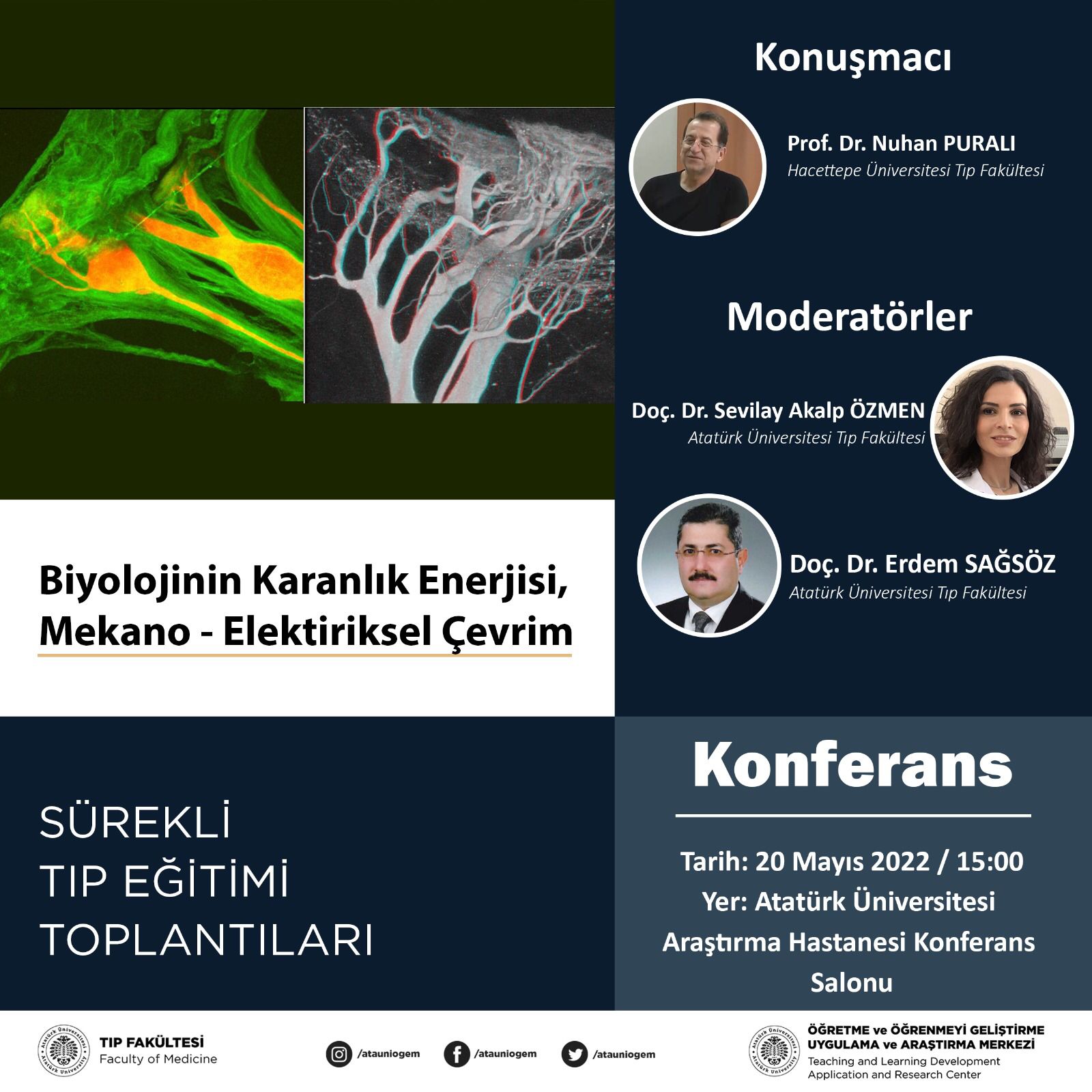 - Sürekli Tıp Eğitimi Toplantıları: Biyolojinin Karanlık Enerjisi, Mekano-Elektriksel Çevrim