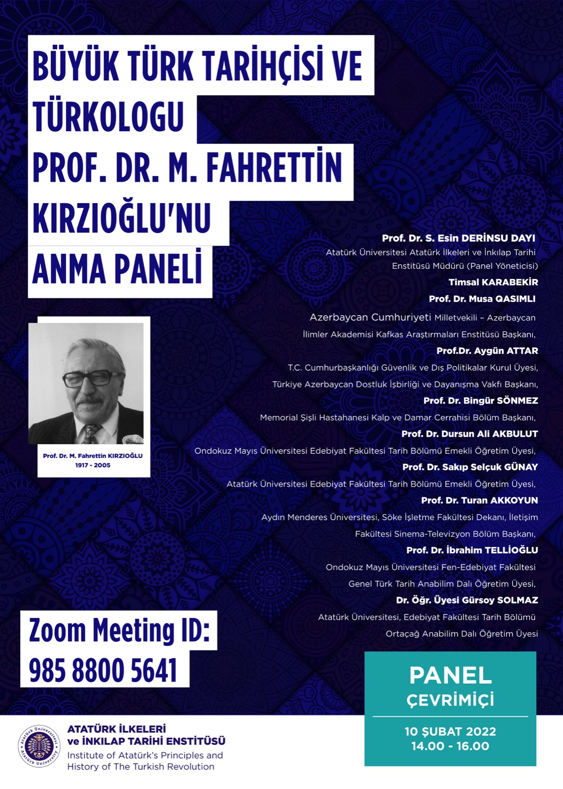 Büyük Türk Tarihçisi ve Türkologu Prof. Dr. M. Fahrettin KIRZIOĞLU'NU Anma Paneli