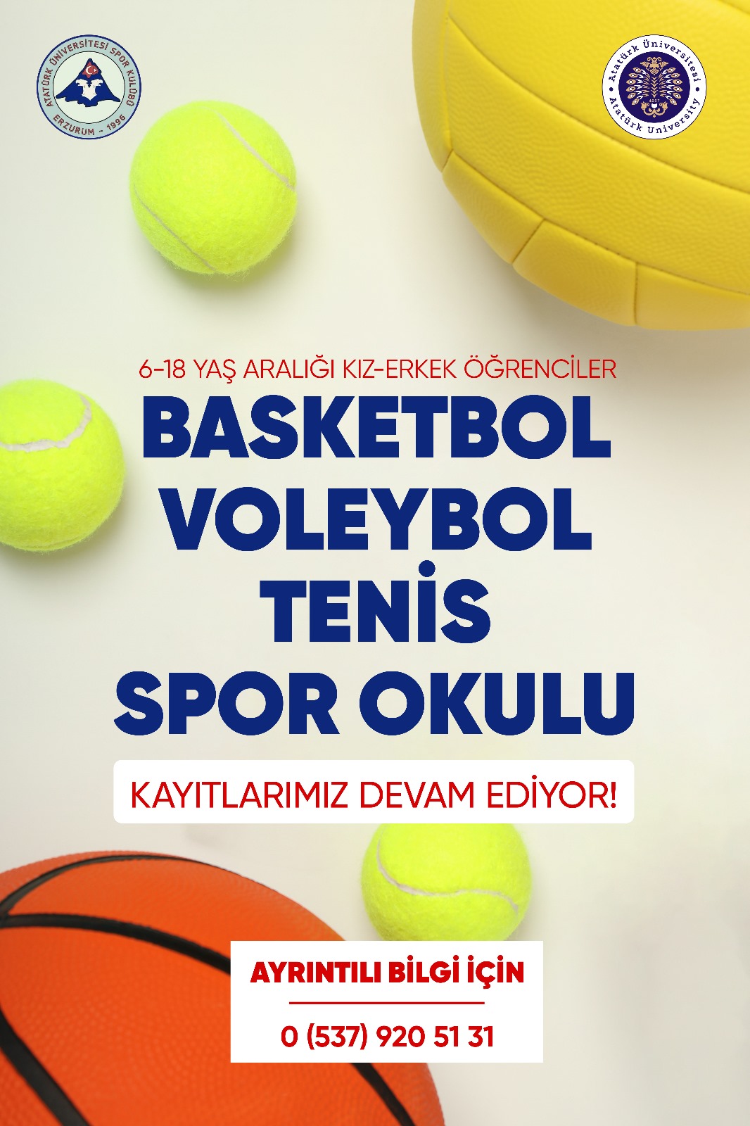 - 6-18 Yaş Aralığı Kız-Erkek Öğrenciler için "Basketbol, Voleybol, Tenis Spor Okulu" Kayıtları Devam Ediyor