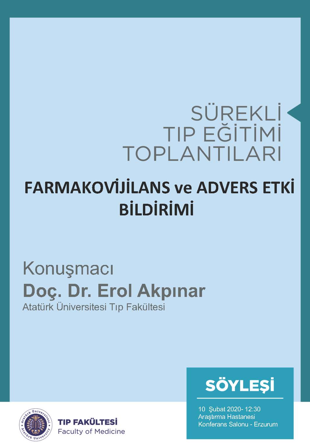 • Sürekli Tıp Eğitimi Toplantıları "Farmakovijilans ve Advers Etki Bildirimi" Doç. Dr. Erol AKPINAR