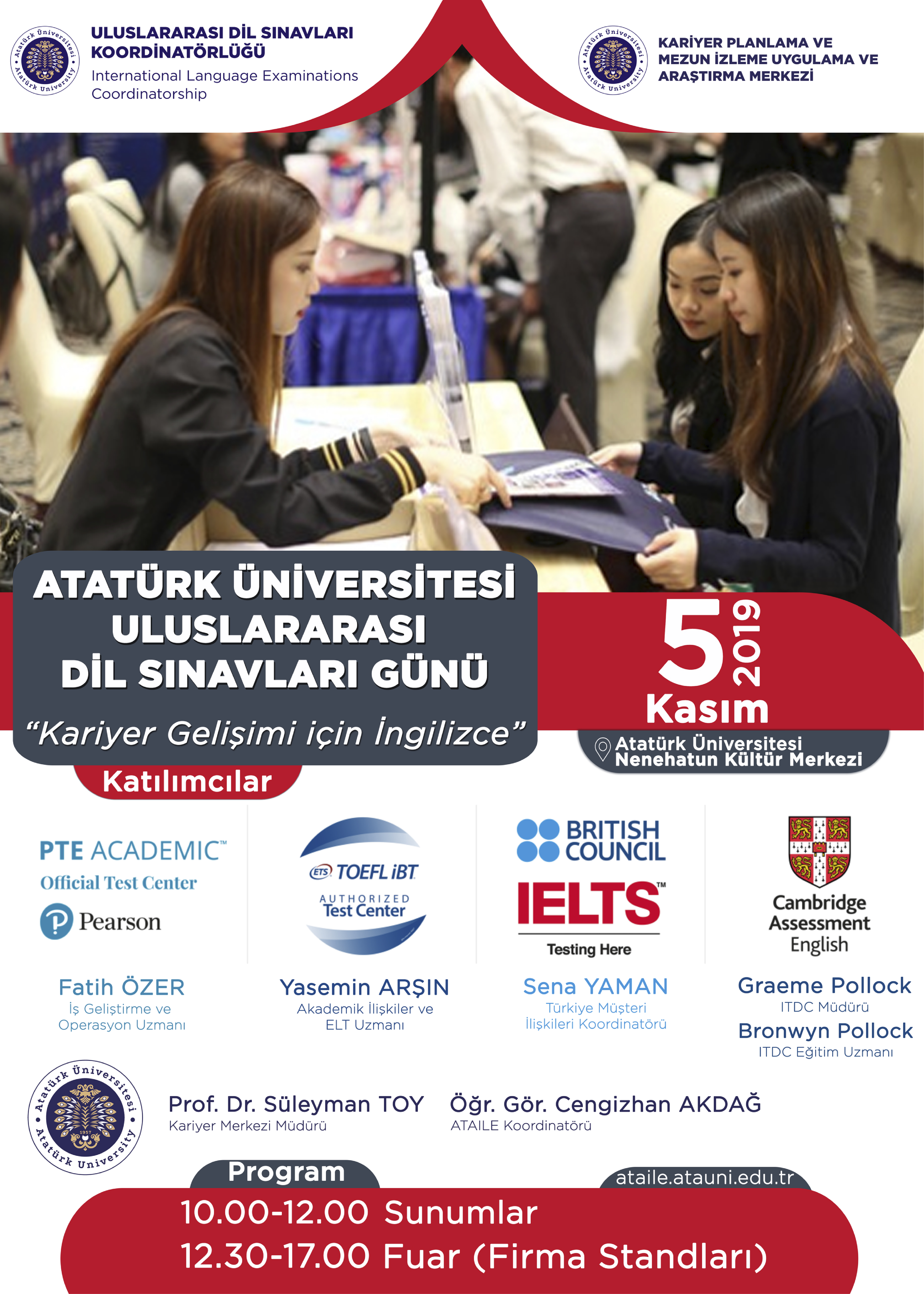 - Atatürk Üniversitesi Uluslararası Dil Sınavları Günü (Kariyer Gelişimi İçin İngilizce)