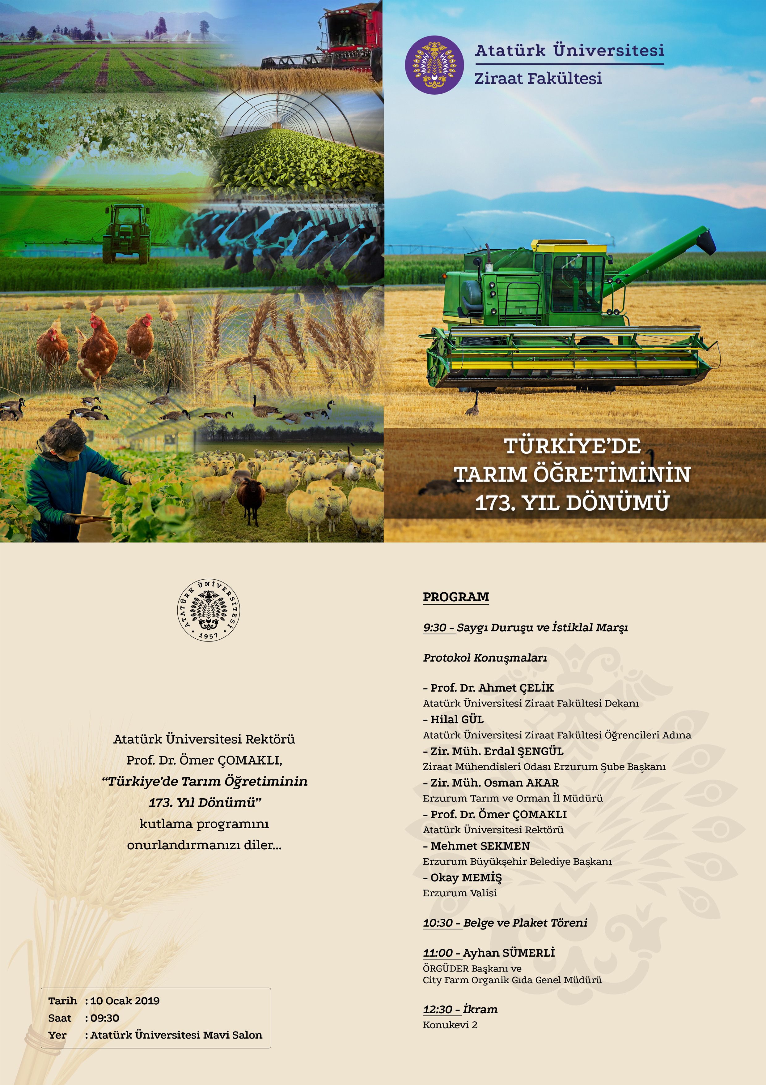 - Türkiye'de Tarım Öğretiminin 173. Yıl Dönümü Kutlama Programı