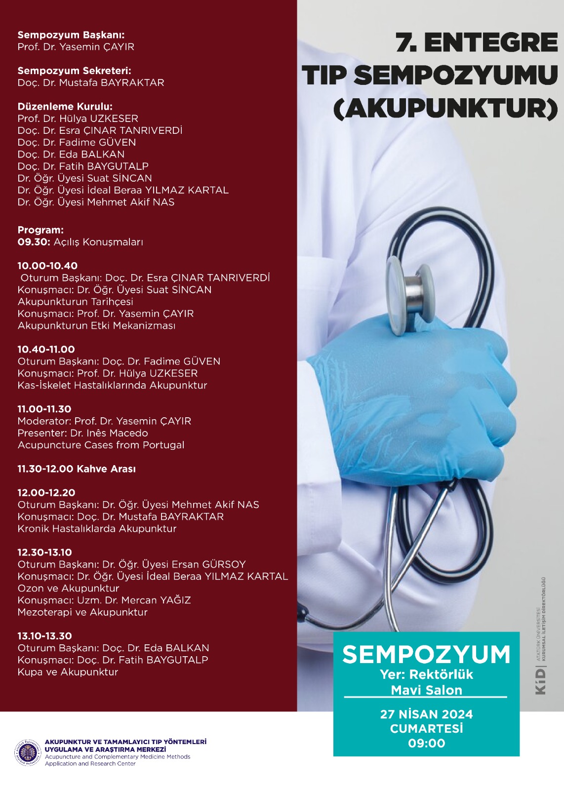 - Sempozyum: " 7. Entegre Tıp Sempozyumu (Akupunktur)"