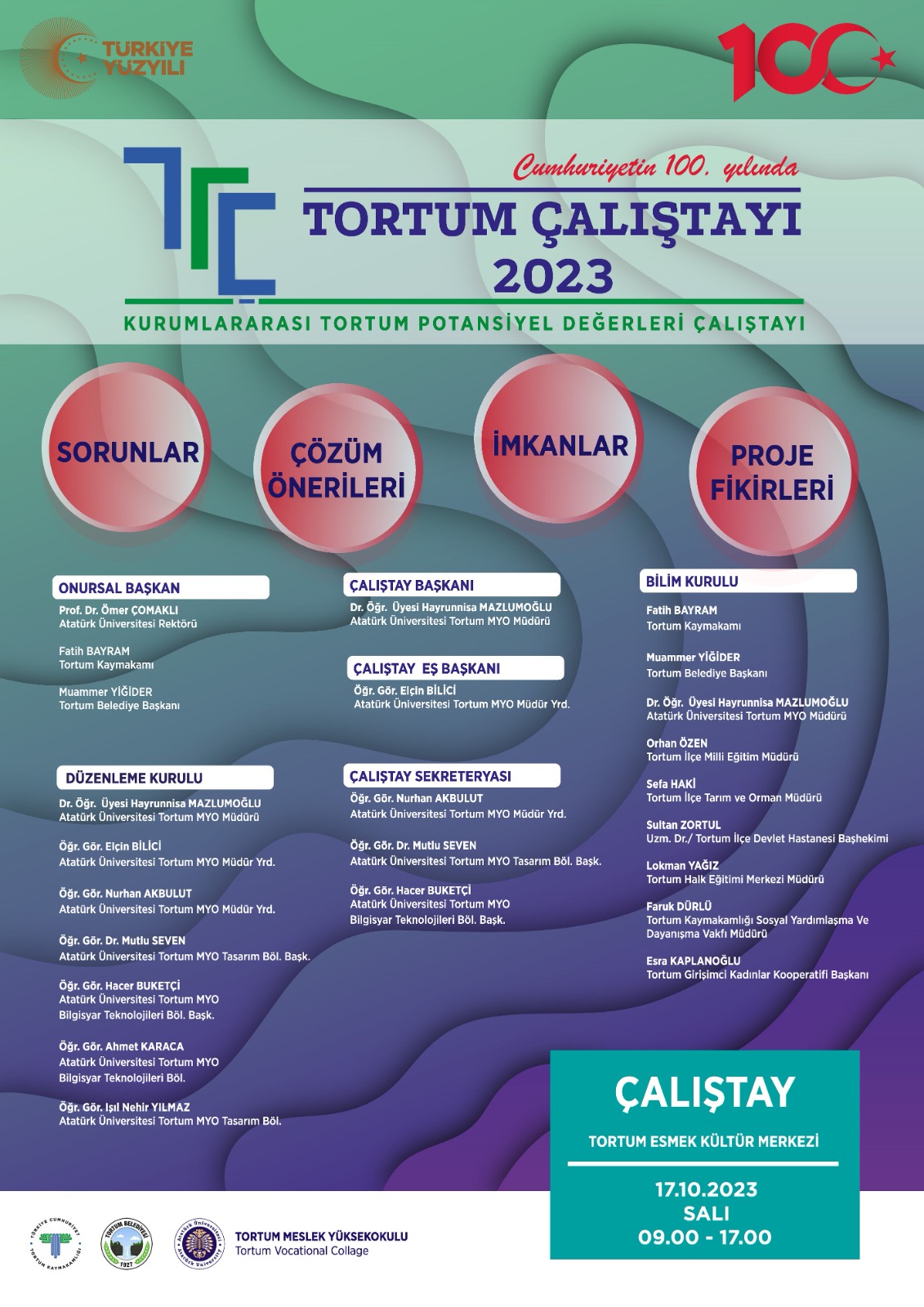 - Çalıştay: "Cumhuriyetin 100. Yılında Tortum Çalıştayı 2023"