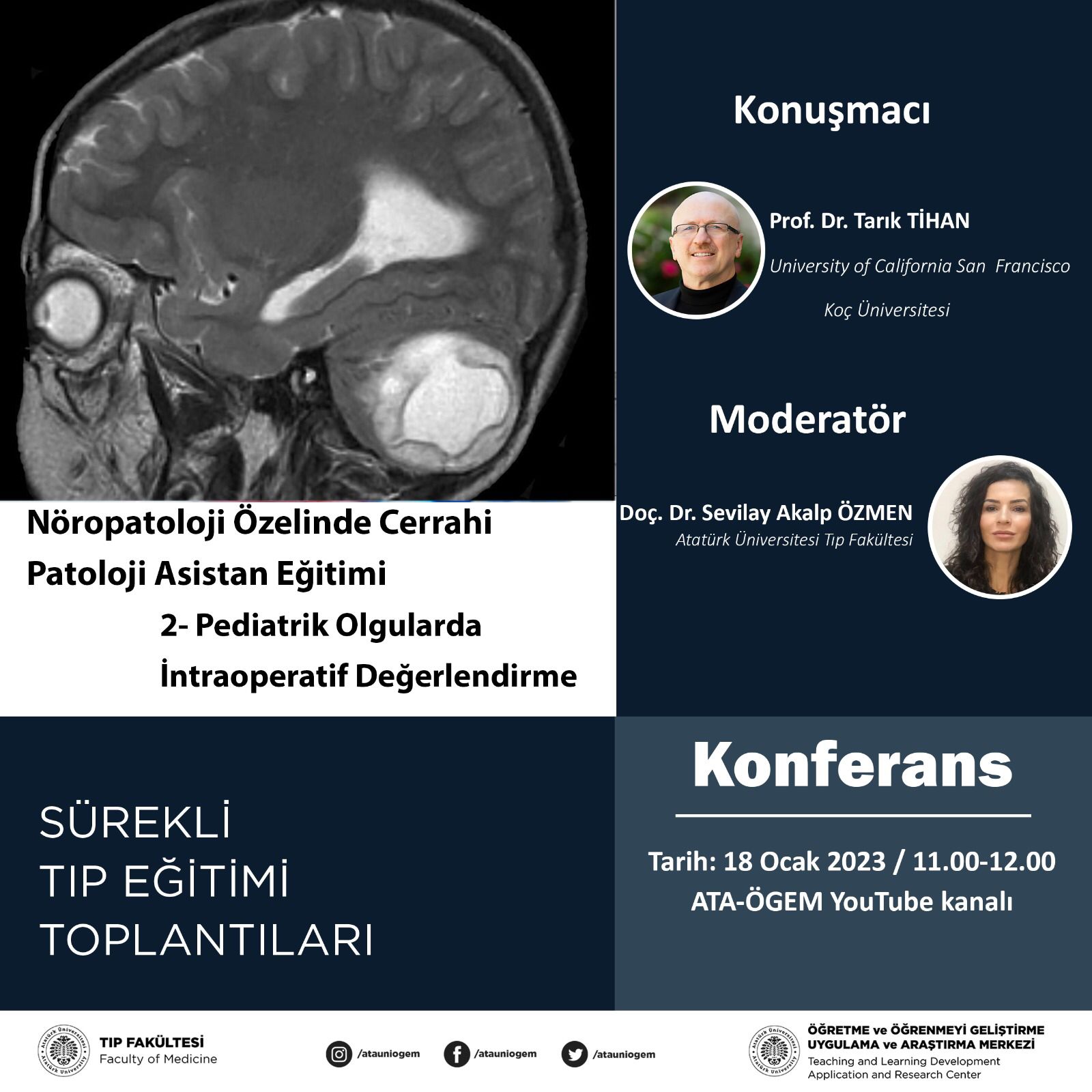 - Konferans: Sürekli Tıp Eğitimi Toplantıları: "Nöropatoloji Özelinde Cerrahi Patoloji Asistan Eğitimi 2-Pediatrik Olgularda İntraoperatif Değerlendirme