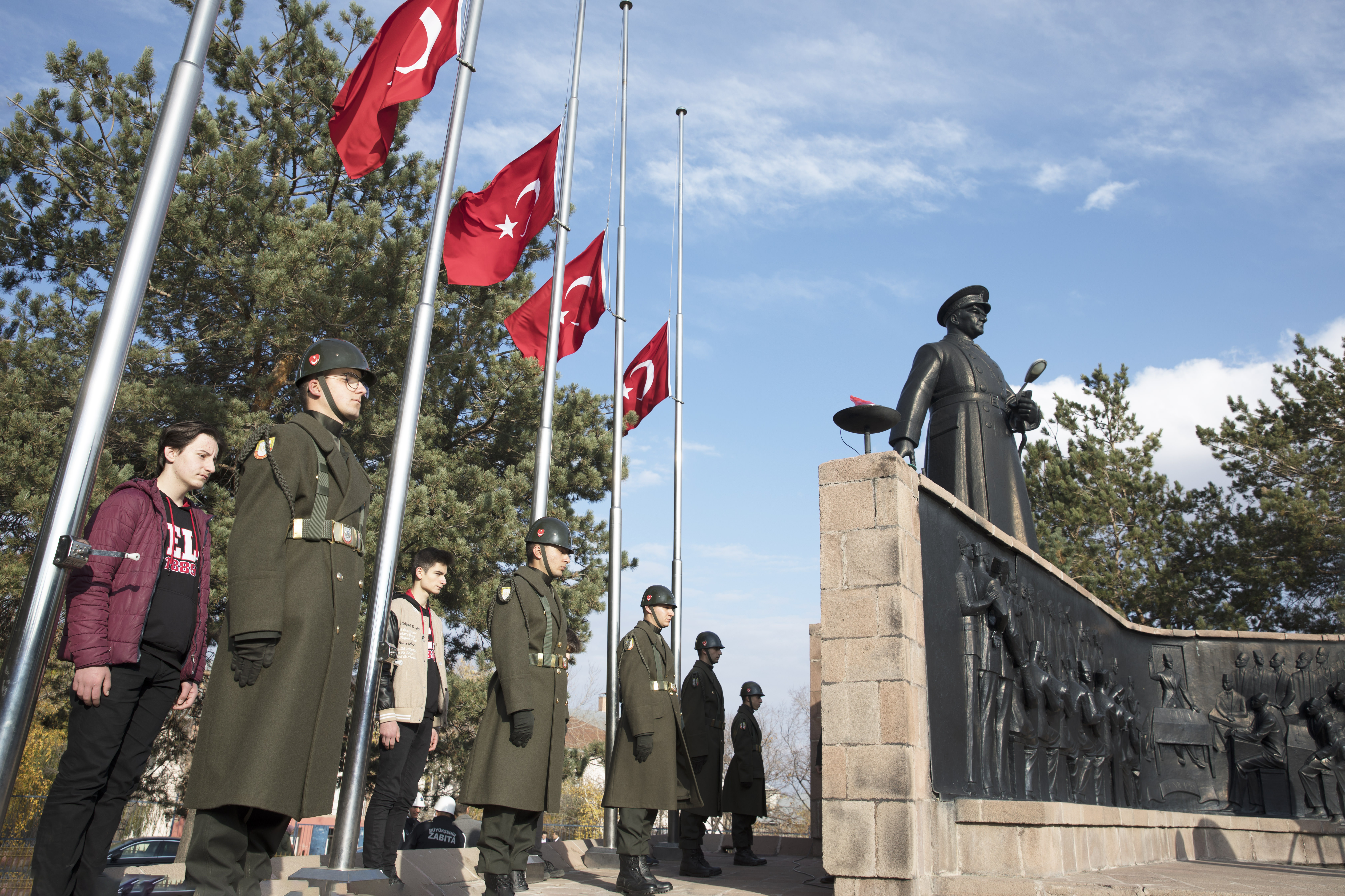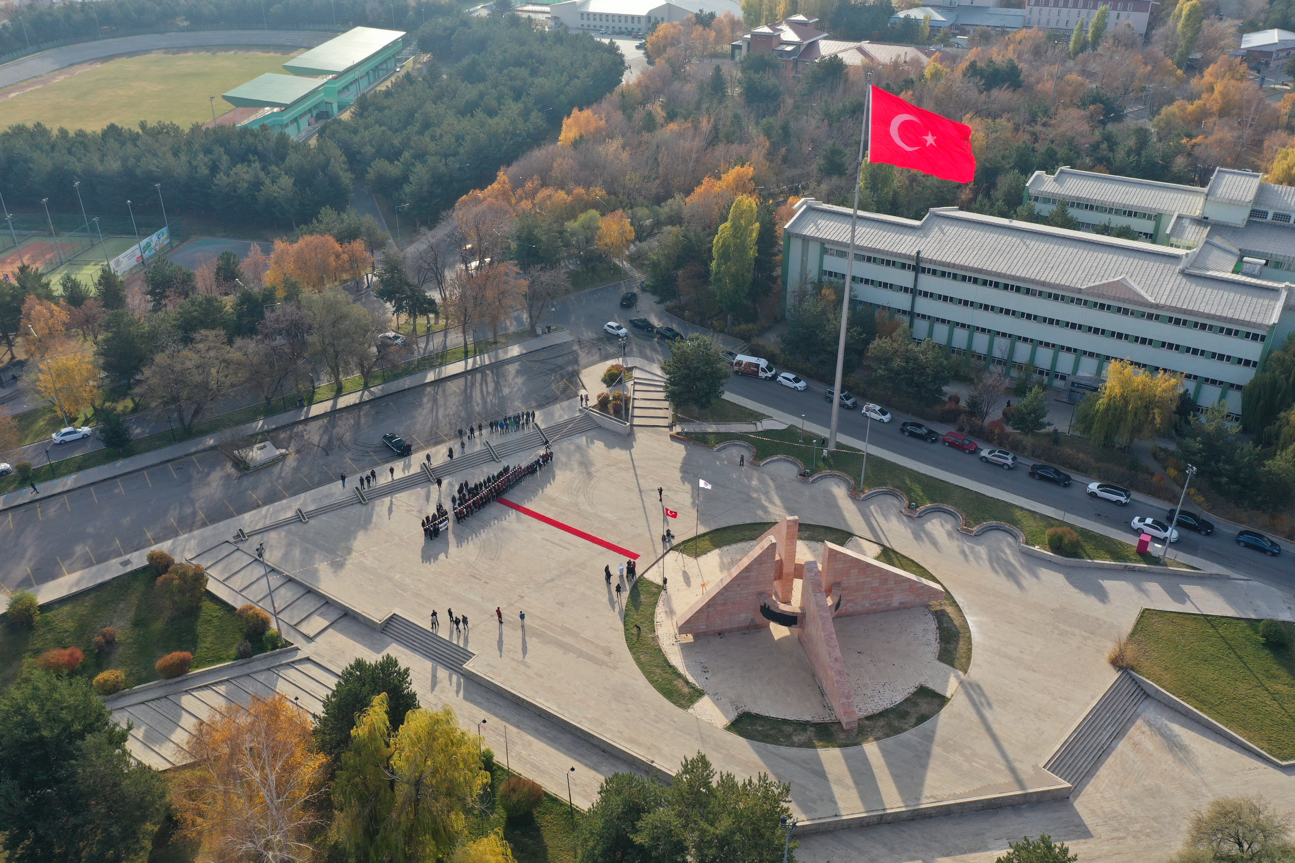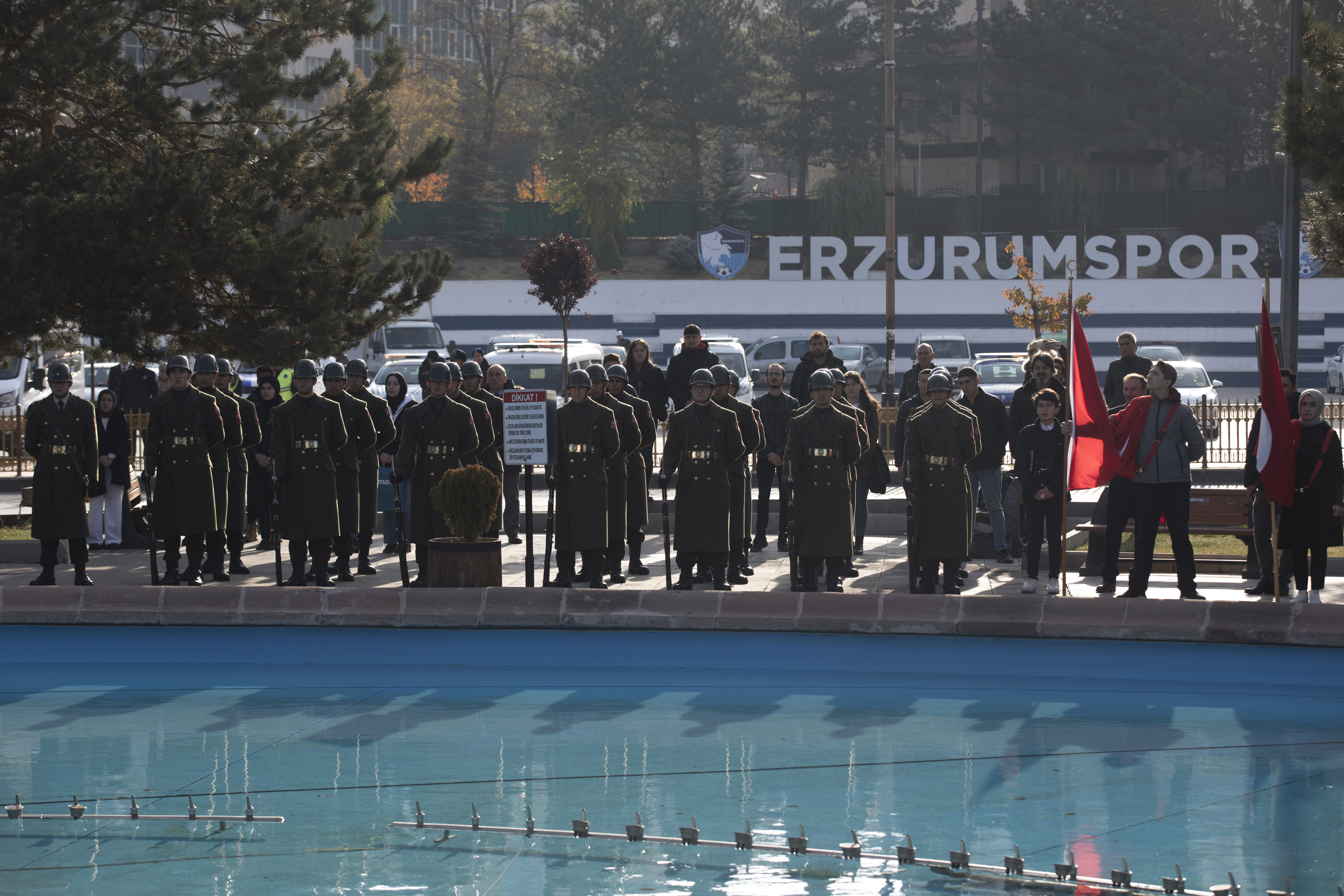 Atatürk Üniversitesi Rektörü Prof. Dr. Ömer Çomaklı’nın da katıldığı 10 Kasım Atatürk’ü Anma Programı, Havuzbaşında bulunan Atatürk Anıtına çelenklerin sunumuyla başladı. Devlet erkânının katılımıyla gerçekleşen programda saatler 9’u 5 geçeyi gösterdiğinde sirenler eşliğinde iki dakikalık saygı duruşunda bulunuldu, ardından İstiklal Marşı’nın okunmasıyla bayraklar yarıya indirildi.