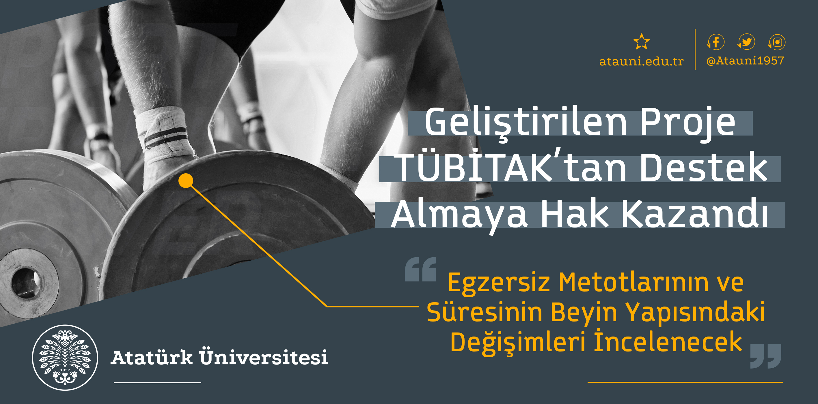Atatürk Üniversitesi Proje Geliştirme ve Koordinasyon Ofisi yürütücülüğünde hazırlanan "Egzersiz Metotlarının Serebral Arteriyel Elastikiyete Etkisinin Near-İnfrared Spektroskopiyle ve Serebral Kortikal Yolak Etkisinin Manyetik Rezonans Traktografiyle Değerlendirilmesi ve Egzersiz Uyumunun Otomatik Analiz Programıyla Tespiti" konu başlığıyla Tıp Fakültesi Öğretim Üyesi Doç. Dr. Gökhan Polat yürütücülüğünde sunulan proje, TÜBİTAK 1001 Spor Araştırmaları projeleri kapsamında desteklendi.