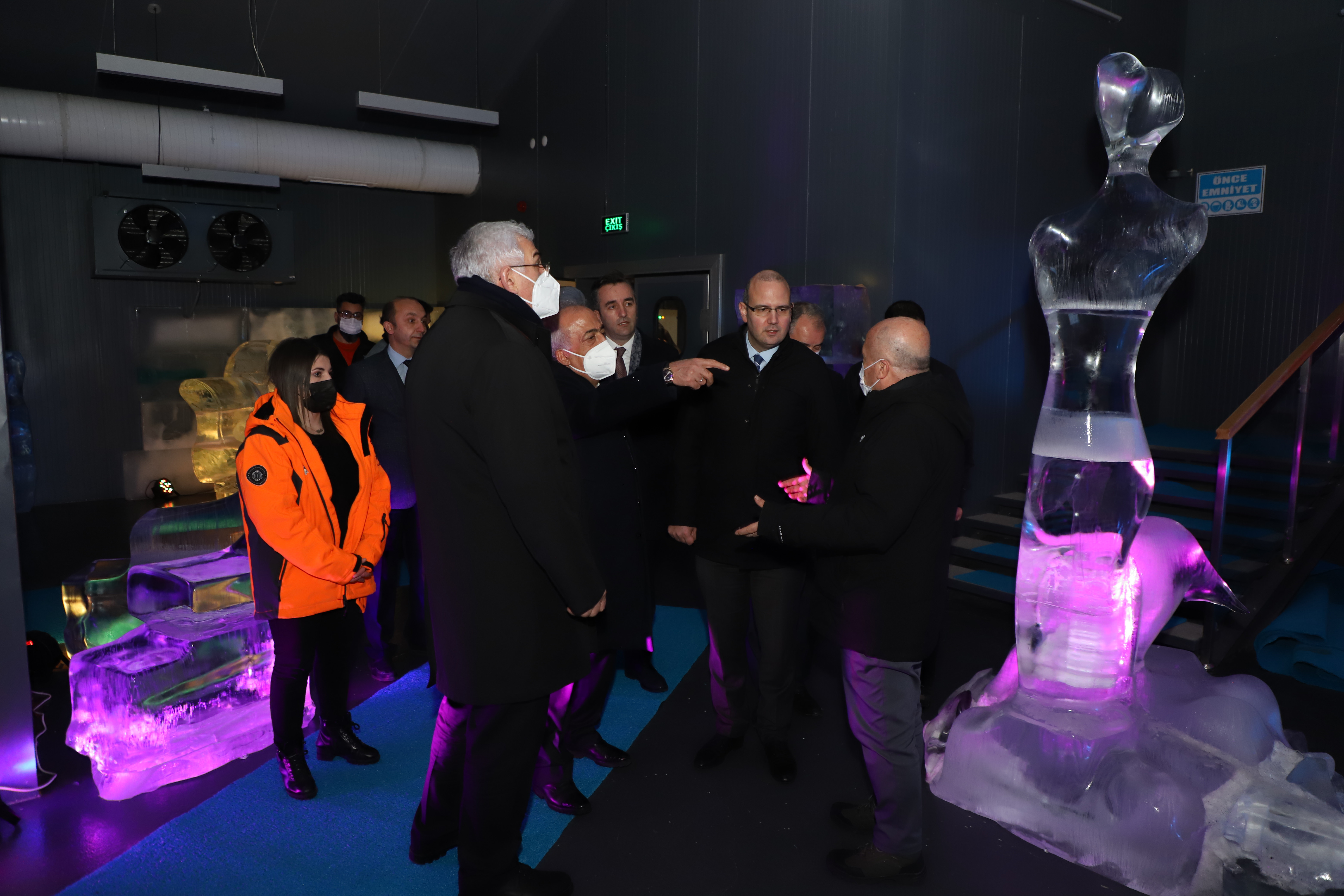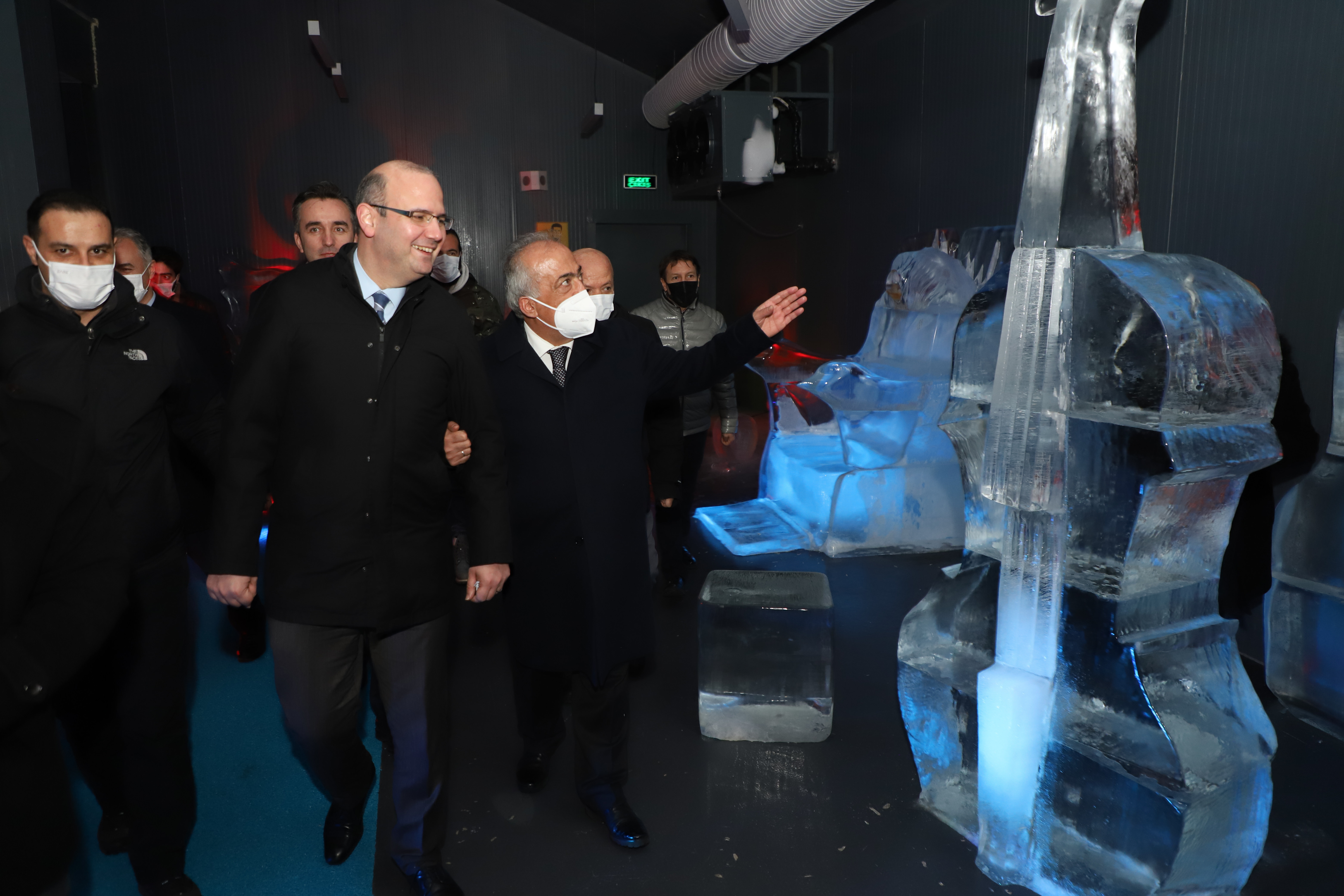 Biyoçeşitlilik Müzesinin ardından ise Türkiye’nin tek buz müzesi olma özelliğine sahip Ata Buz Müzesini ziyaret eden Ömer İleri, eksi 10 derecede sergilenen eserleri inceledi. Eserlerin Heykel Bölümü öğretim üyeleri ve öğrencileri tarafından yapıldığını söyleyen Ata Buz Müzesi Koordinatörü Prof. Dr. Mustafa Bulat, eserler hakkında konuklara bilgi verdi.