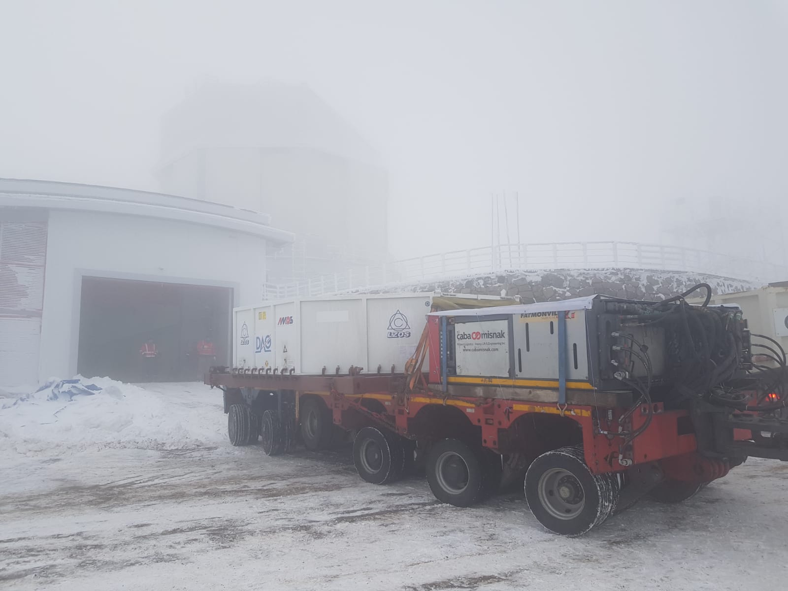 Türkiye’nin en büyüğü olma özelliğini taşıyan ayna, özel güvenlik tedbirleri ve büyük titizlikle yüklendiği TIR ile 30 kilometrelik hızla ve 5 saatlik yolculuğun ardından Konaklı Karakaya Tepelerinde, 3 bin 170 metre yükseklikte yer alan DAG yerleşkesine taşındı.
