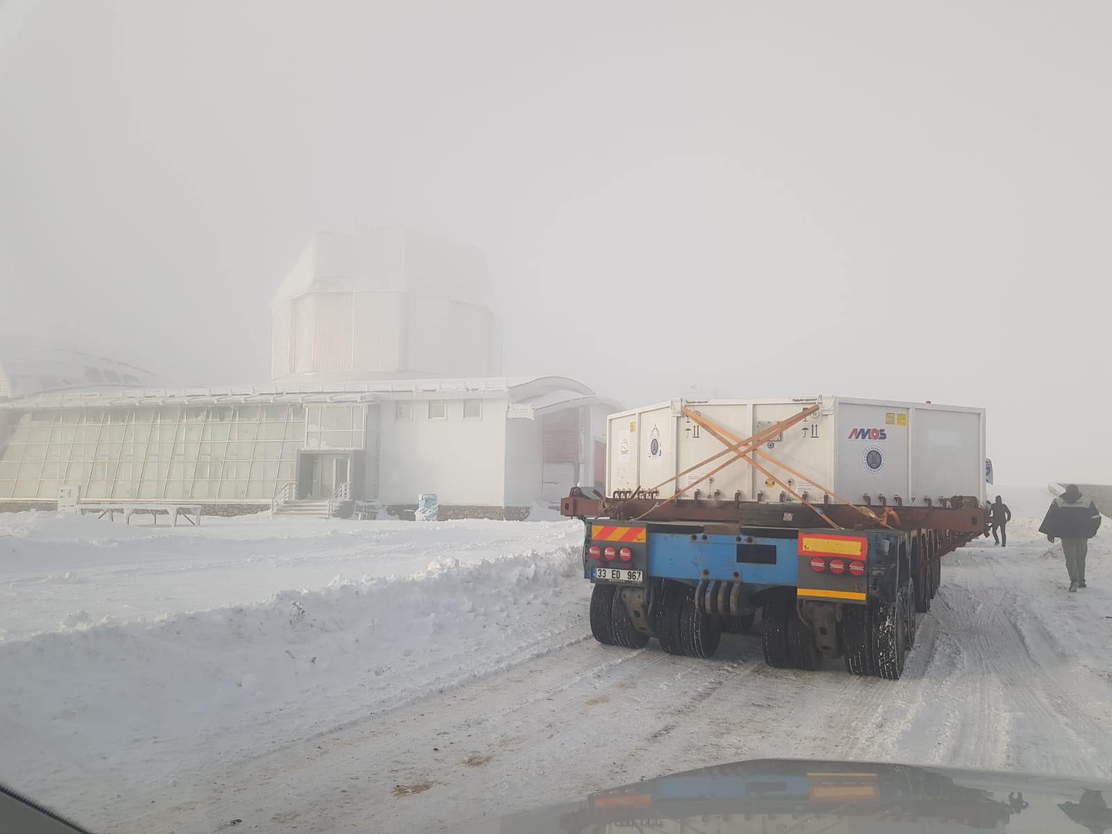 Aynanın Karakaya Tepesine tırmanışı öncesi TIR’daki aynanın son kontrolleri yapılırken, ATASAM Müdürü Prof. Dr. Cahit Yeşilyaprak, basın mensuplarını bilgilendirdi. Yeşilyaprak: “Dağ yoluna vardıktan sonra biraz daha yavaşlayacağız çünkü hassas bir ekipman taşıyoruz. O yüzden de olabildiğince konforlu bir şekilde aynayı götürmek istiyoruz. Yukarıda da kar yağışı başladı. O yüzden biraz acele etmemiz gerekiyor. Yolu hem güvenlik ekiplerimizce kontrol altına alıp hem de dağdaki yağan karı ufak da olsa temizleyerek yukarı kadar çıkmayı düşünüyoruz. Aynayı gözlemevine çıkarttıktan sonra kar sebebiyle şantiyedeki çalışmalara ara verilecek çünkü kar yağışı nedeniyle kışın çalışmayacağız. Haziran ayı itibarıyla tekrar montaj işlerine devam edeceğiz” dedi.