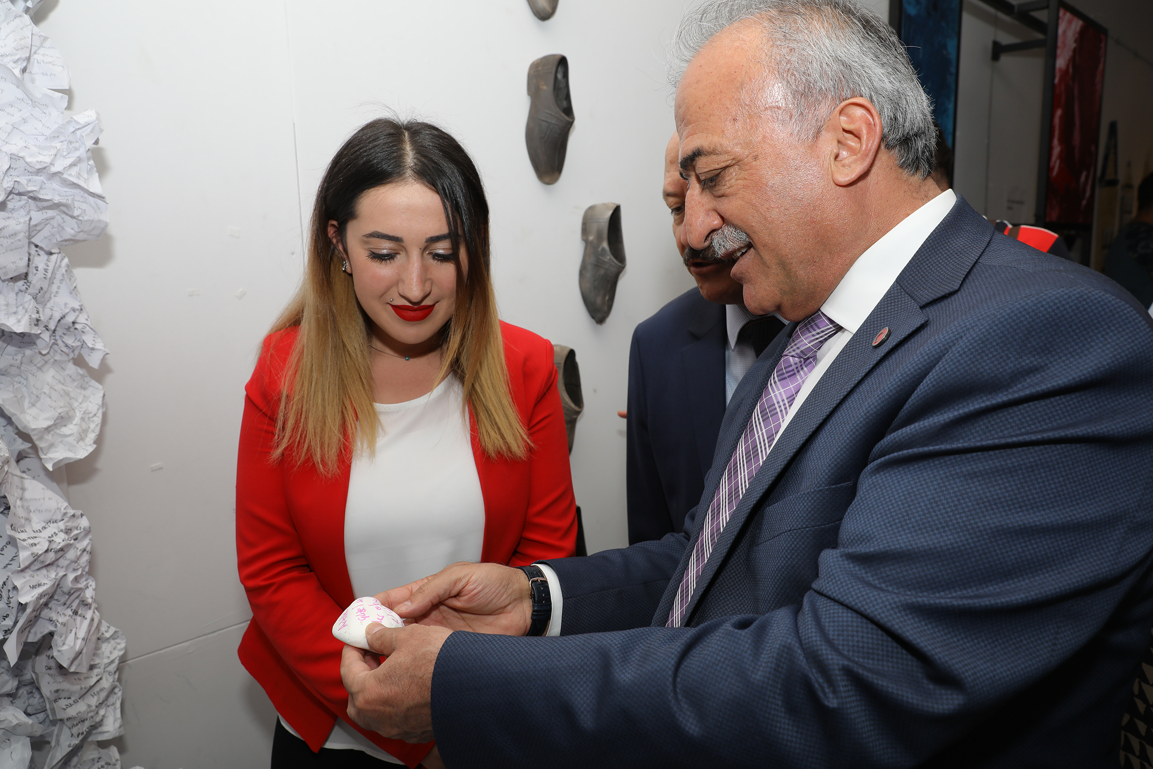Güzel Sanatlar Fakültesinde bugün, Geleneksel Türk Sanatları, Resim, Heykel, Grafik, Seramik, Müzik Bilimleri ve Sahne Sanatlarında öğrenim gören son sınıf öğrencilerinin yıl boyunca yaptığı çalışmaların sergilendiğini dile getiren Bulat, öğrencilerin ailelerine de ayrıca teşekkür etti. Gençleri özenle korumaya, üniversite yaşamının ve akademinin bilgi ve deneyimleriyle donatmaya çalıştıklarını vurgulayan Prof. Dr. Bulat, ailelerin de onların diplomalarını ellerine alıp, yetişkin ve eğitimli bireyler olarak kendi ayakları üzerinde duracakları günü dört gözle beklediklerini, yıllardır sabırla bekledikleri anın geldiğini ve yaşadıkları mutluluğun ve gururun en doğal hakları olduğu söyledi.