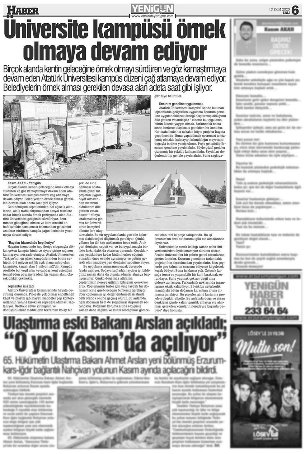 Birçok alanda kentin geleceğine örnek olmayı sürdüren ve göz kamaştırmaya devam eden Atatürk Üniversitesi kampüs düzeni çağ atlamaya devam ediyor Belediyelerin örnek alması gerekilen devasa alan adeta saat gibi işliyor.