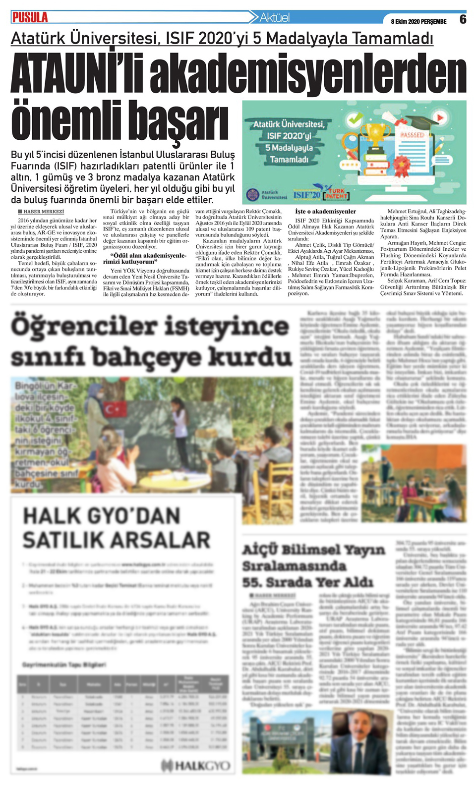 Bu yıl 5’incisi düzenlenen İstanbul Uluslararası Buluş Fuarında (ISIF) hazırladıkları patentli ürünler ile 1 altın, 1 gümüş ve 3 bronz madalya kazanan Atatürk Üniversitesi öğretim üyeleri, her yıl olduğu gibi bu yıl da buluş fuarında önemli bir başarı elde ettiler.