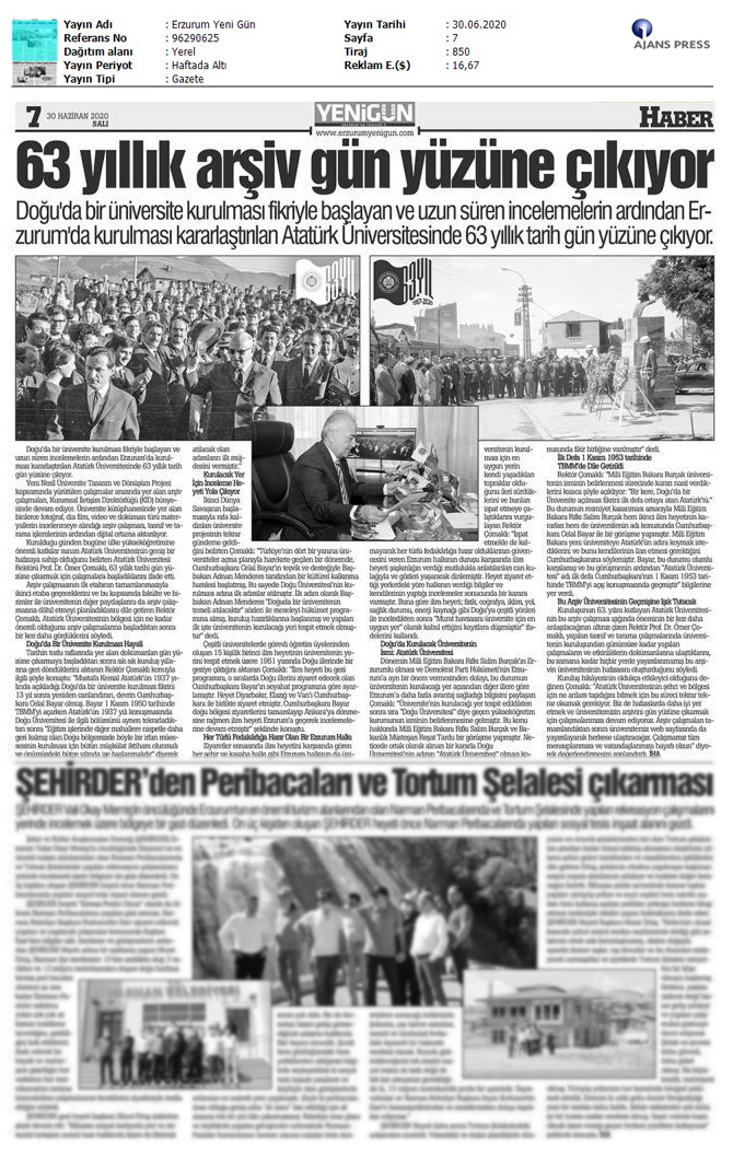 Haberin detaylarına ulaşmak için: https://www.star.com.tr/guncel/koronavirus-hastalarinin-yemek-ve-ilaclari-atacan-robottan-haber-1554724/Doğu’da bir üniversite kurulması fikriyle başlayan ve uzun süren incelemelerin ardından Erzurum’da kurulması kararlaştırılan Atatürk Üniversitesinde 63 yıllık tarih gün yüzüne çıkıyor.