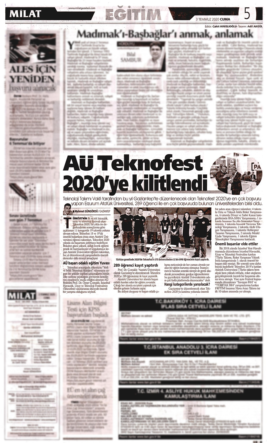 Atatürk Üniversitesi, Türkiye Teknoloji Takımı Vakfı tarafından bu yıl Gaziantep’te düzenlenecek olan Teknofest 2020’ye en çok başvuruda bulunan üniversitelerden birisi oldu.
