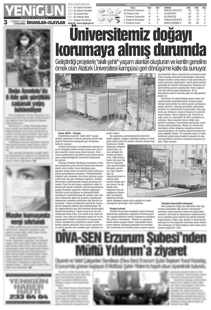 Haberin detaylarına ulaşmak için:Geliştirdiği projelerle "Akıllı Şehir" yaşam alanları oluşturan ve kentin geneline örnek olan Atatürk Üniversitesi kampüsü geri dönüşüme katkı sunuyor.
