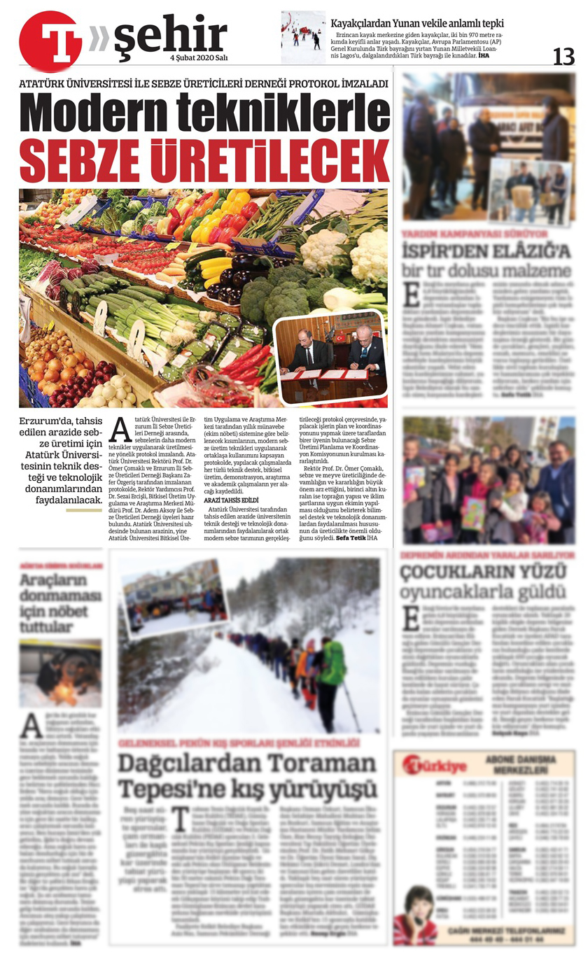 Erzurum'da tahsis edilen arazide sebze üretimi için Atatürk Üniversitesinin teknik desteği ve teknolojik donanımlarından yararlanılacak.