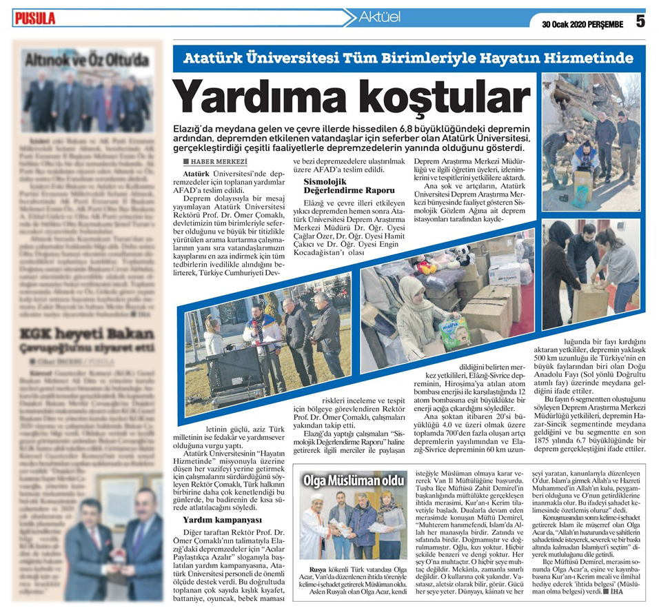 Elazığ’da meydana gelen ve çevre illerde hissedilen 6,8 büyüklüğündeki depremin ardından, depremden etkilenen vatandaşlar için seferber olan Atatürk Üniversitesi, gerçekleştirdiği çeşitli faaliyetlerle depremzedelerin yanında olduğunu gösterdi.