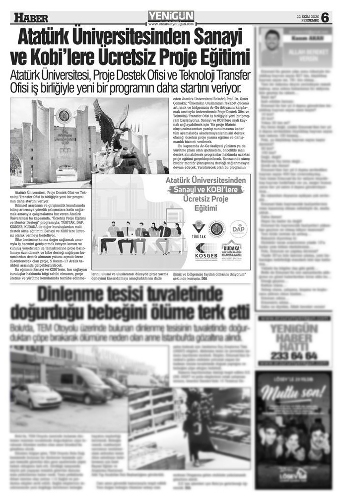 Haberin ayrıntılarına ulaşmak için: https://www.takvim.com.tr/guncel/2020/10/27/erzurum-ataturk-universitesi-ogrencileri-tubitakin-yarismasindan-buyuk-basari-elde-ettilerAtatürk Üniversitesi, Proje Destek Ofisi ve Teknoloji Transfer Ofisi iş birliğiyle yeni bir programın daha startını veriyor.