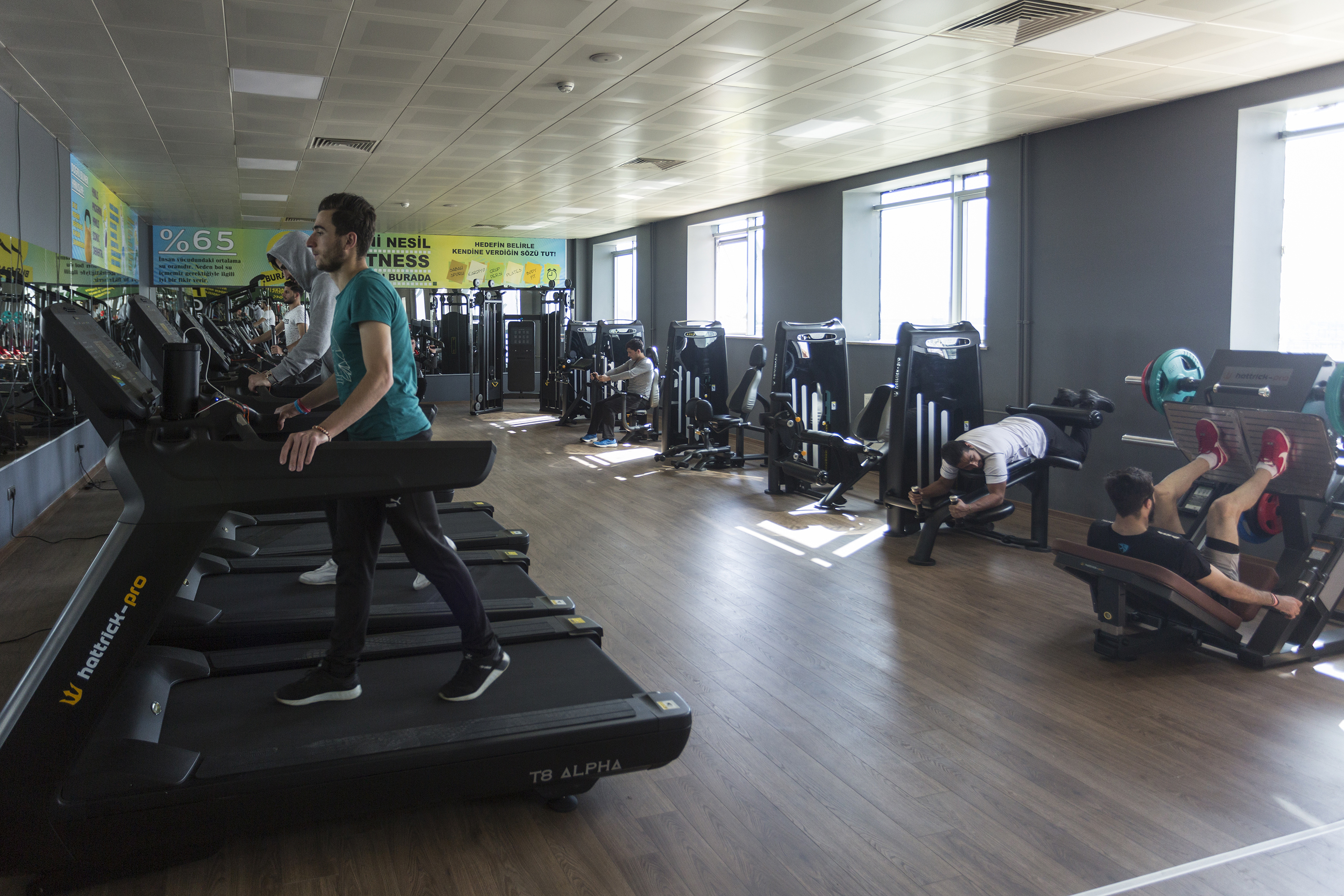 250 m2 kullanım alanına sahip olan Fitness Salonunda; Kardiyovasküler egzersizler için 5 adet koşu bandı ve 5 adet eliptik bisiklet bulunuyor. 45 m2 serbest ağırlık bölümünde halter ile olimpik kaldırışlar, dambıl ile farklı kas gruplarına yönelik kuvvet ve hipertrofi antrenmanları, kettlebell ile koordinasyon antrenmanları yapılabiliyor ve kullanıcının isteği ile antrenörler tarafından hedefe yönelik antrenman programlarının hazırlanabileceği imkânlar mevcut. Fitness Salonunda, mat üzerinde yer egzersizleri ile core bölgesini hedef alan egzersizler yapılabilmektedir. Her kas grubunu çalıştırmaya yönelik 9 adet ağırlık makinesi bulunmaktadır. Makineler yeni başlayan bireyler için doğru formda egzersiz yapma fırsatı sunmakta aynı zaman da sakatlanma riskini azaltmaktadır. 4 adet kablolu istasyon ile hareketleri çeşitlendirebilir ve farklı açılardan kasları hedef alarak çalıştırabilmektedir. TRX ile vücut ağırlığı kullanılarak farklı dirençlerde egzersizler yapılabilmektedir. Jump box, ağırlık topu, direnç bandı ile egzersizlerin çeşitlenmesi sağlanabilir. Kullanıcının isteği ile Personal Trainer (Kişisel Antrenör) eşliğinde istenilen hedefe etkili ve hızlı şekilde ulaşılabilir.