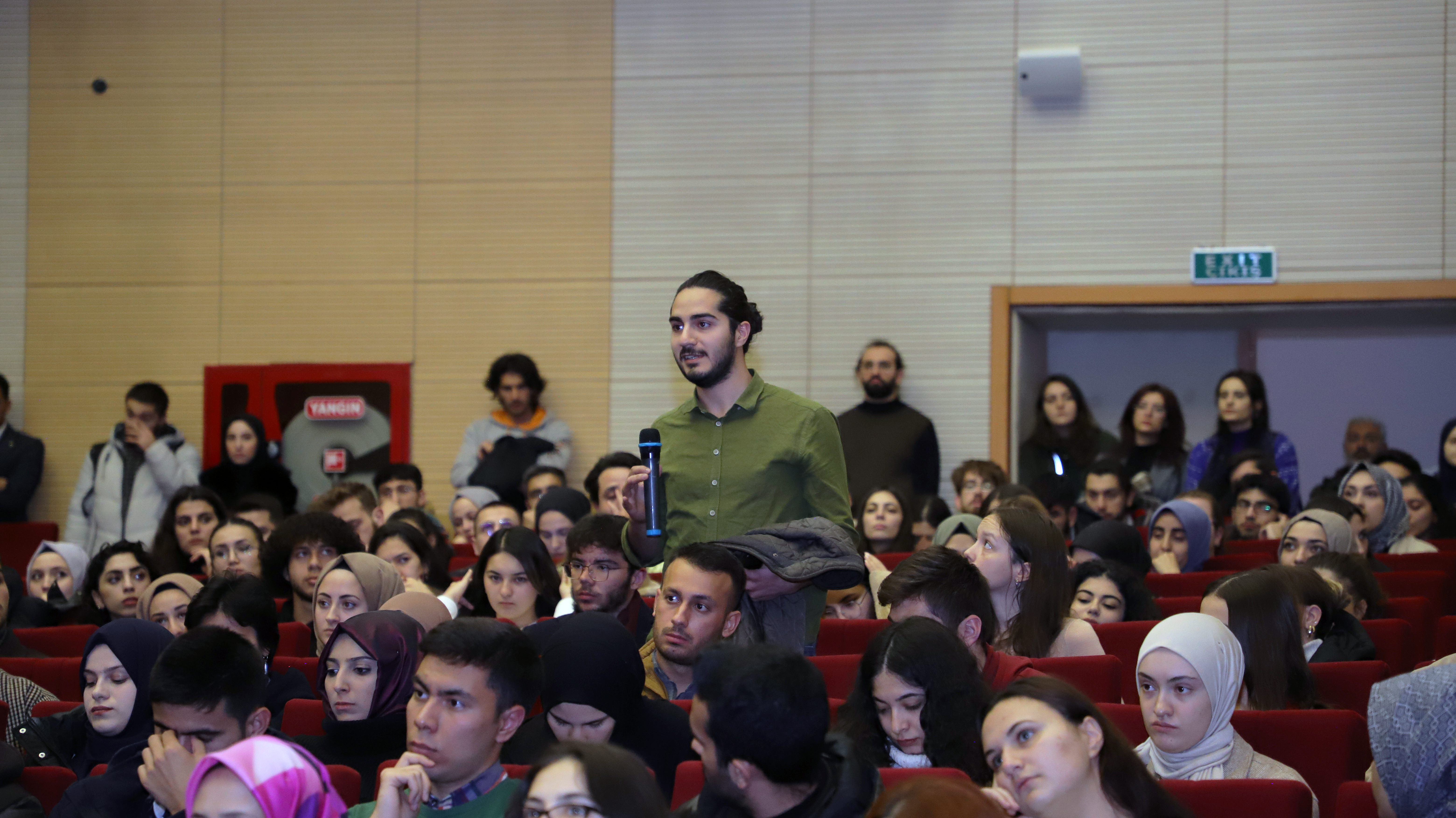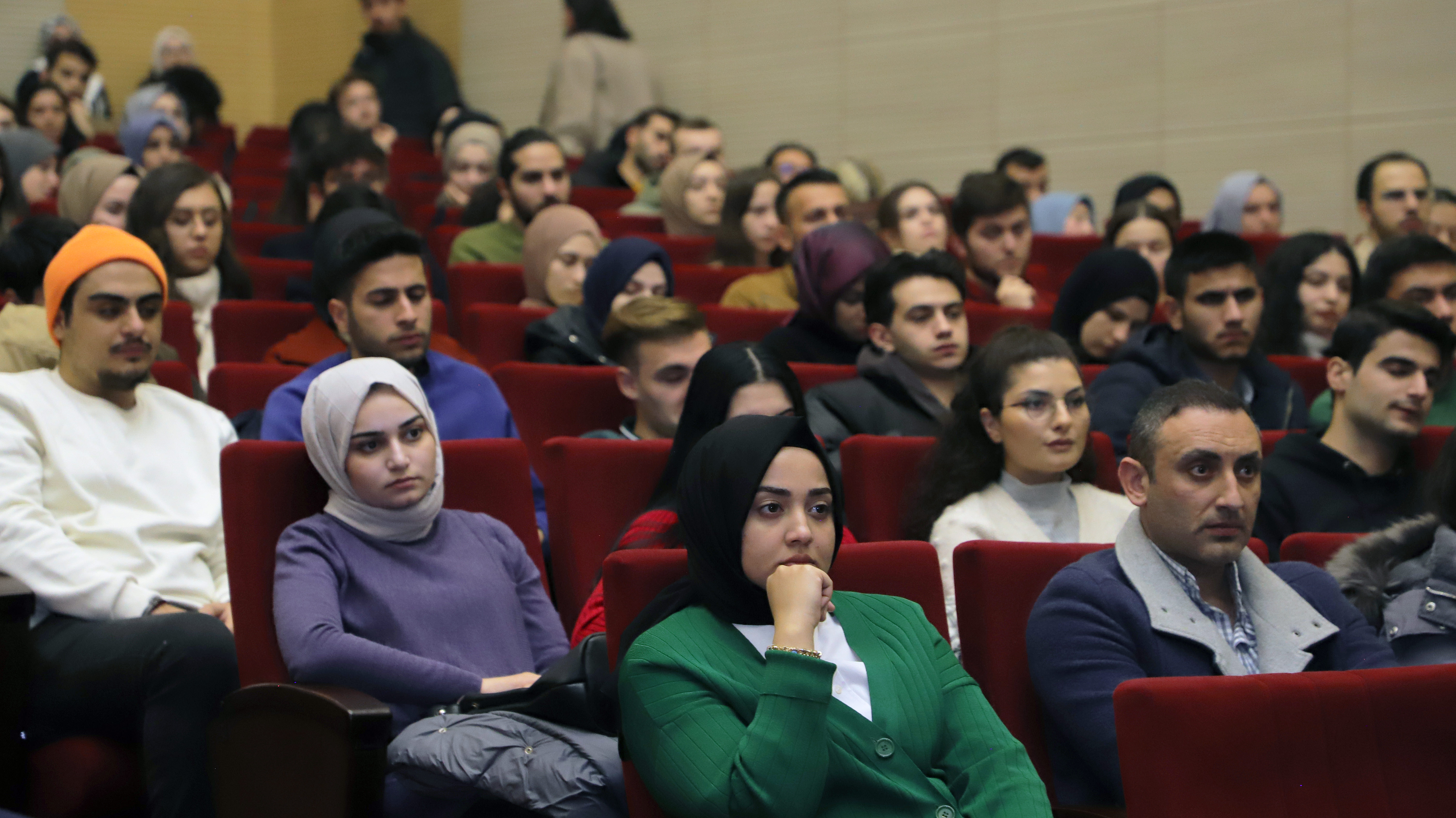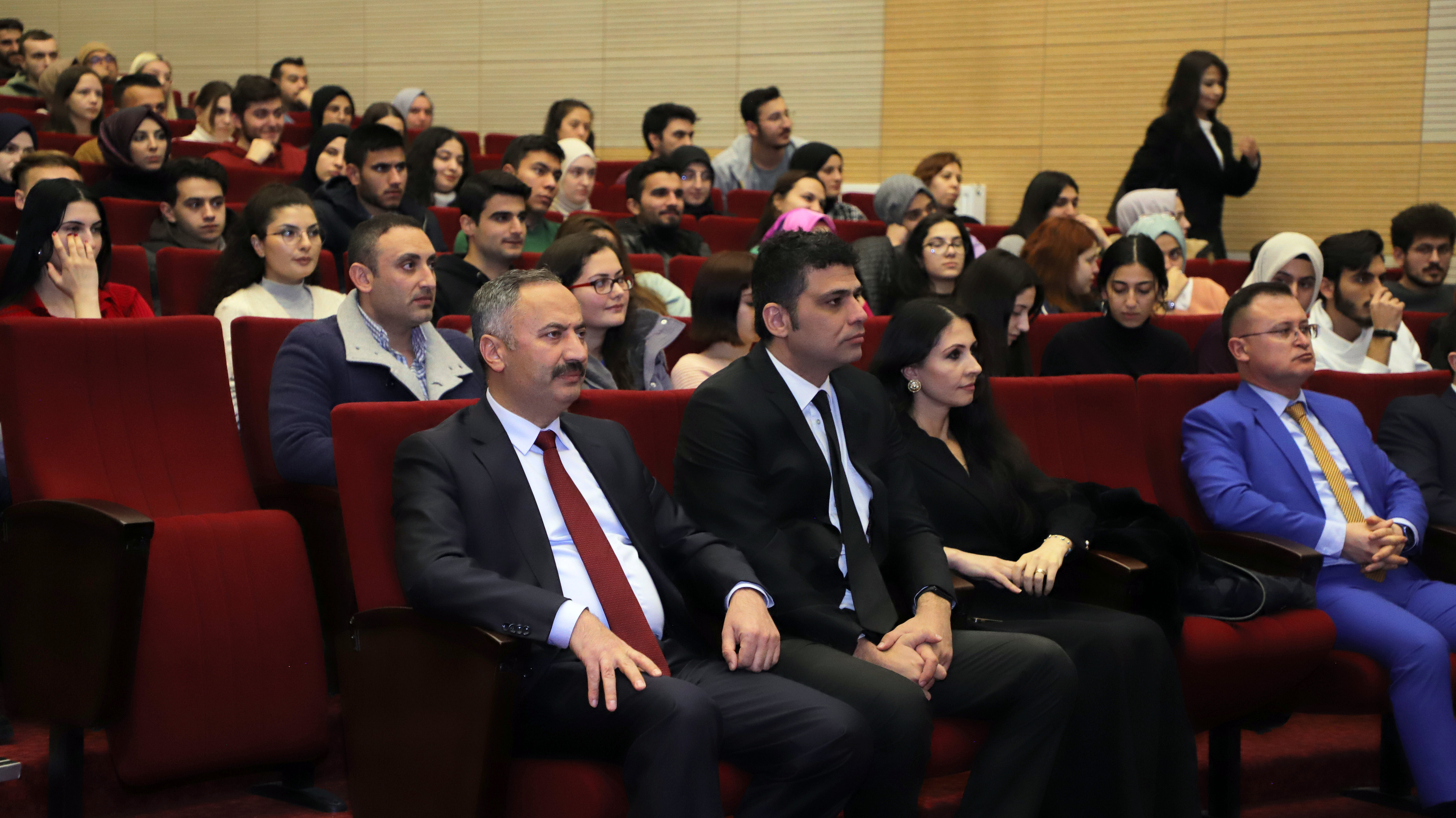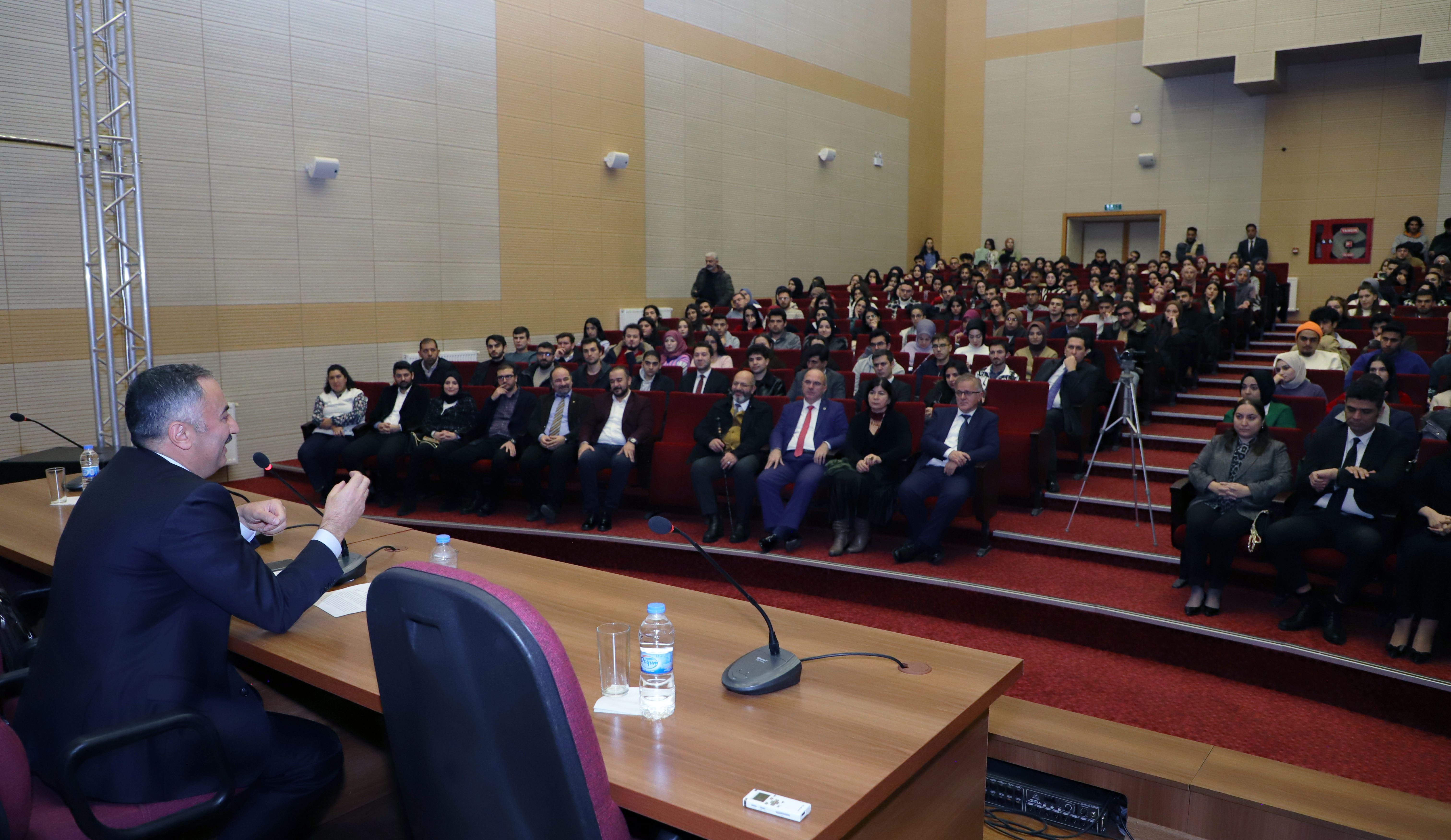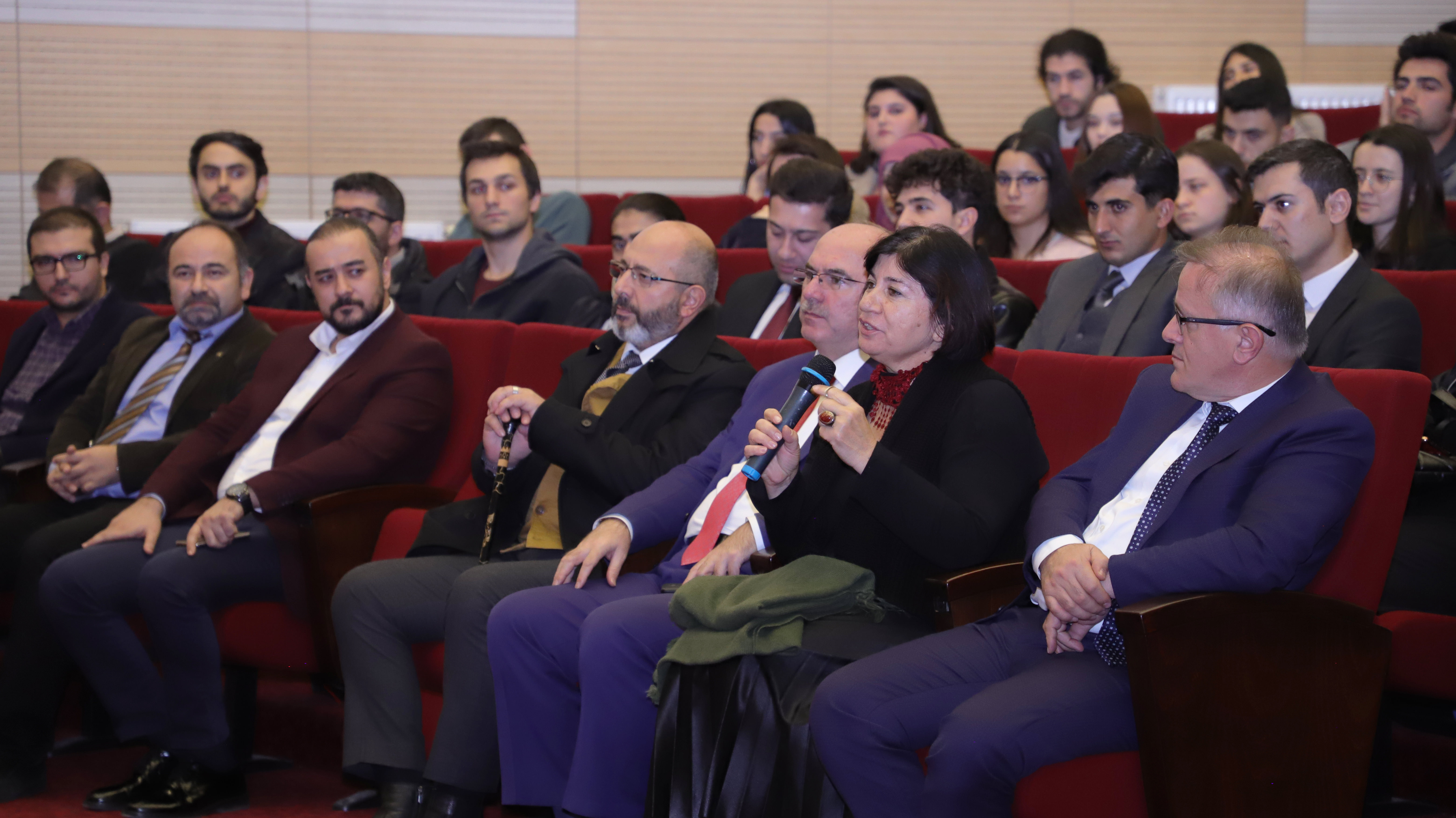 Hukuk Fakültesi Konferans Salonunda düzenlenen söyleşiye Rektör Yardımcısı Prof. Dr. Hüseyin Özer, Hukuk Fakültesi Dekanı Prof. Dr. Hüseyin Özcan ile çok sayıda akademisyen ve öğrenci katıldı.