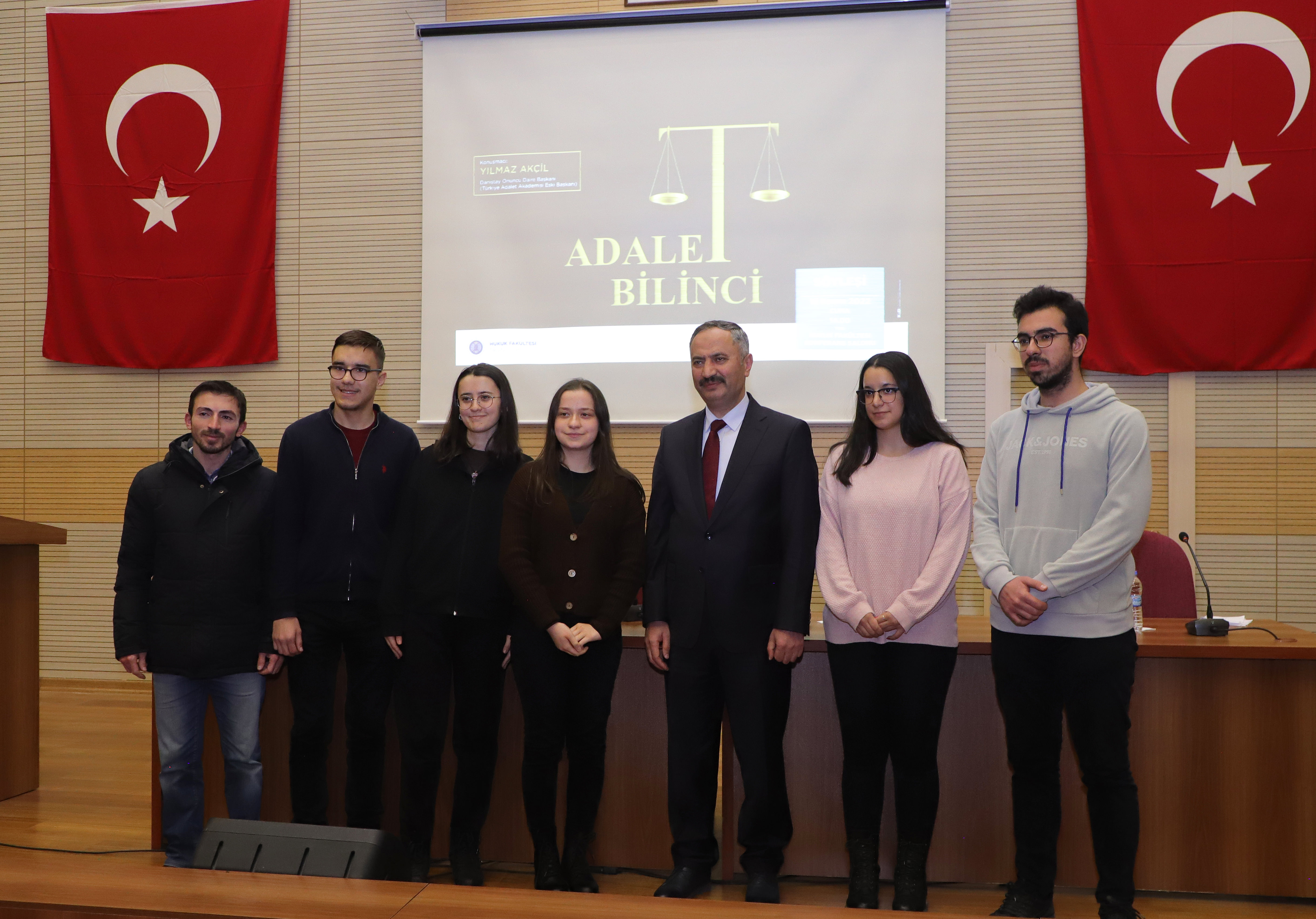 Bu kapsamda Hukuk Fakültesi tarafından düzenlenen ve Danıştay 10. Daire Başkanı ve Türkiye Adalet Akademisi Eski Başkanı Yılmaz Akçil’in konuşmacı olarak yer aldığı ‘Adalet Bilinci’ söyleşisi gerçekleşti.