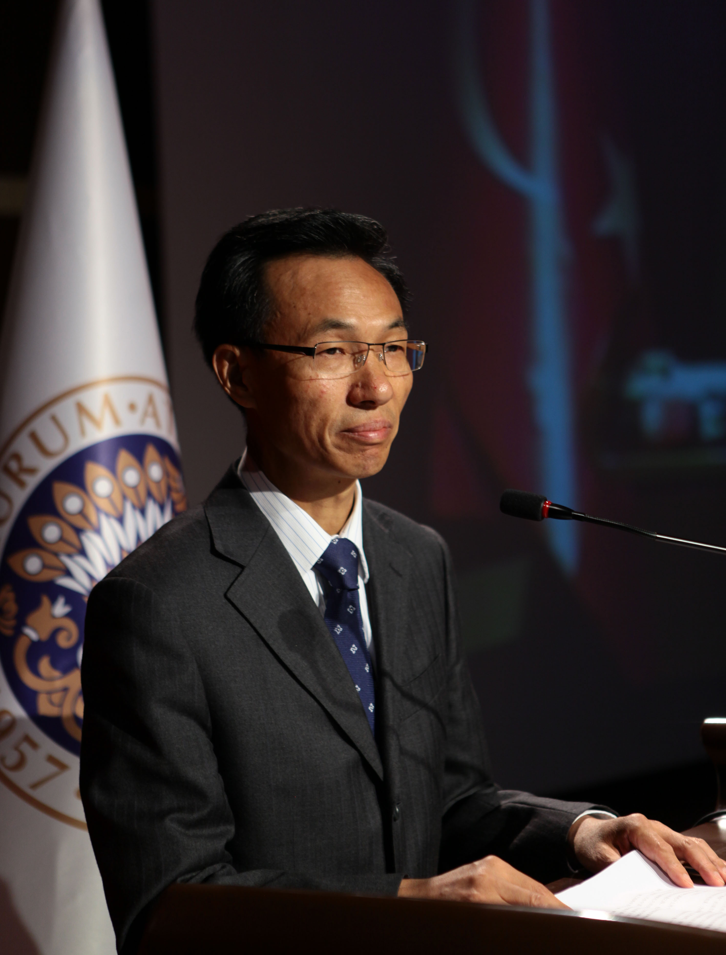 Programda konuşan Çin Büyükelçisi Hongyang Liu, Erzurum’a gelmekten, Atatürk Üniversitesi’nde bulunmaktan ve bu sempozyuma katılmaktan memnuniyet duyduğunu belirterek, kültürel diyalog programı kurduğu için Rektör Prof. Dr. Hikmet Koçak’a teşekkür etti.