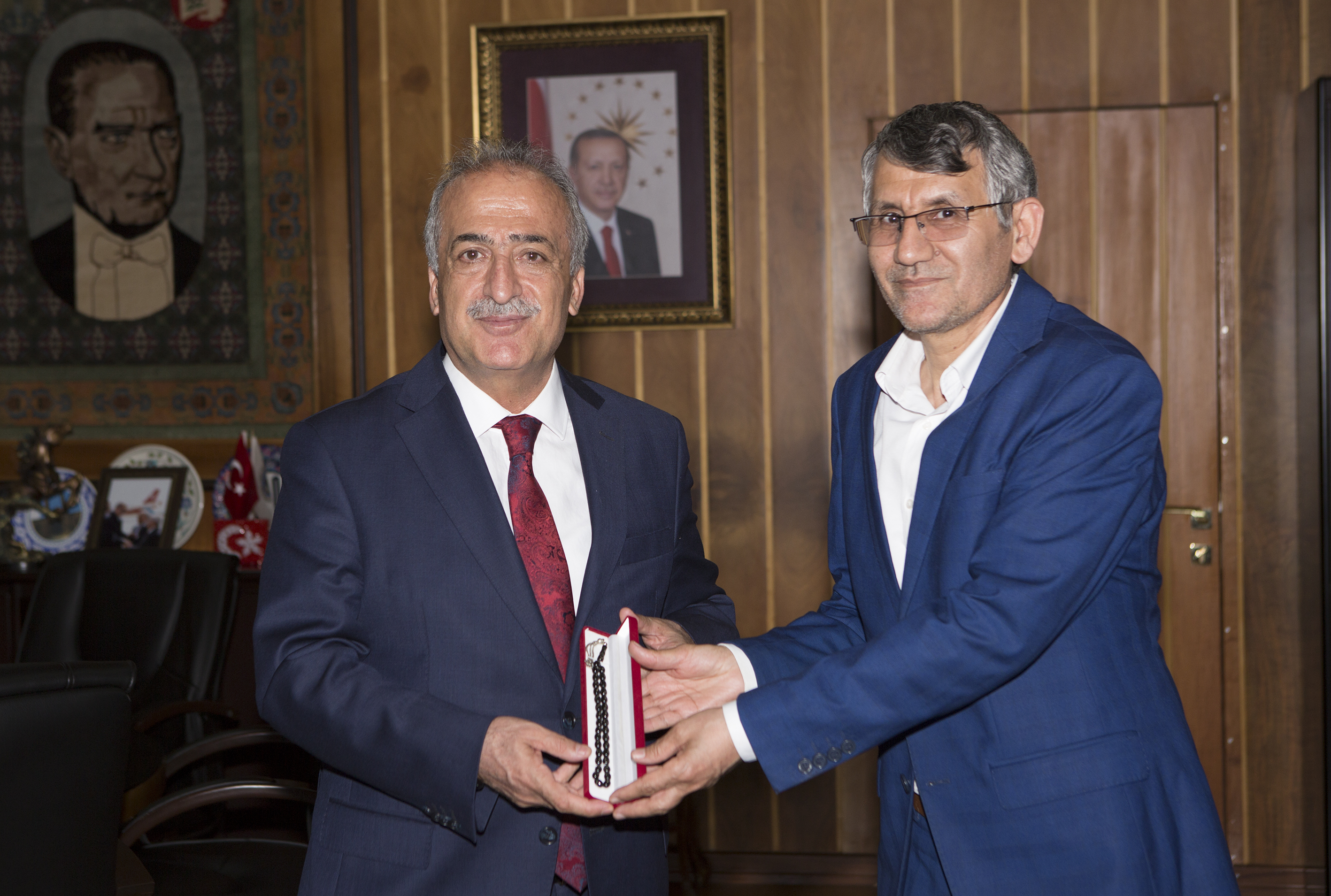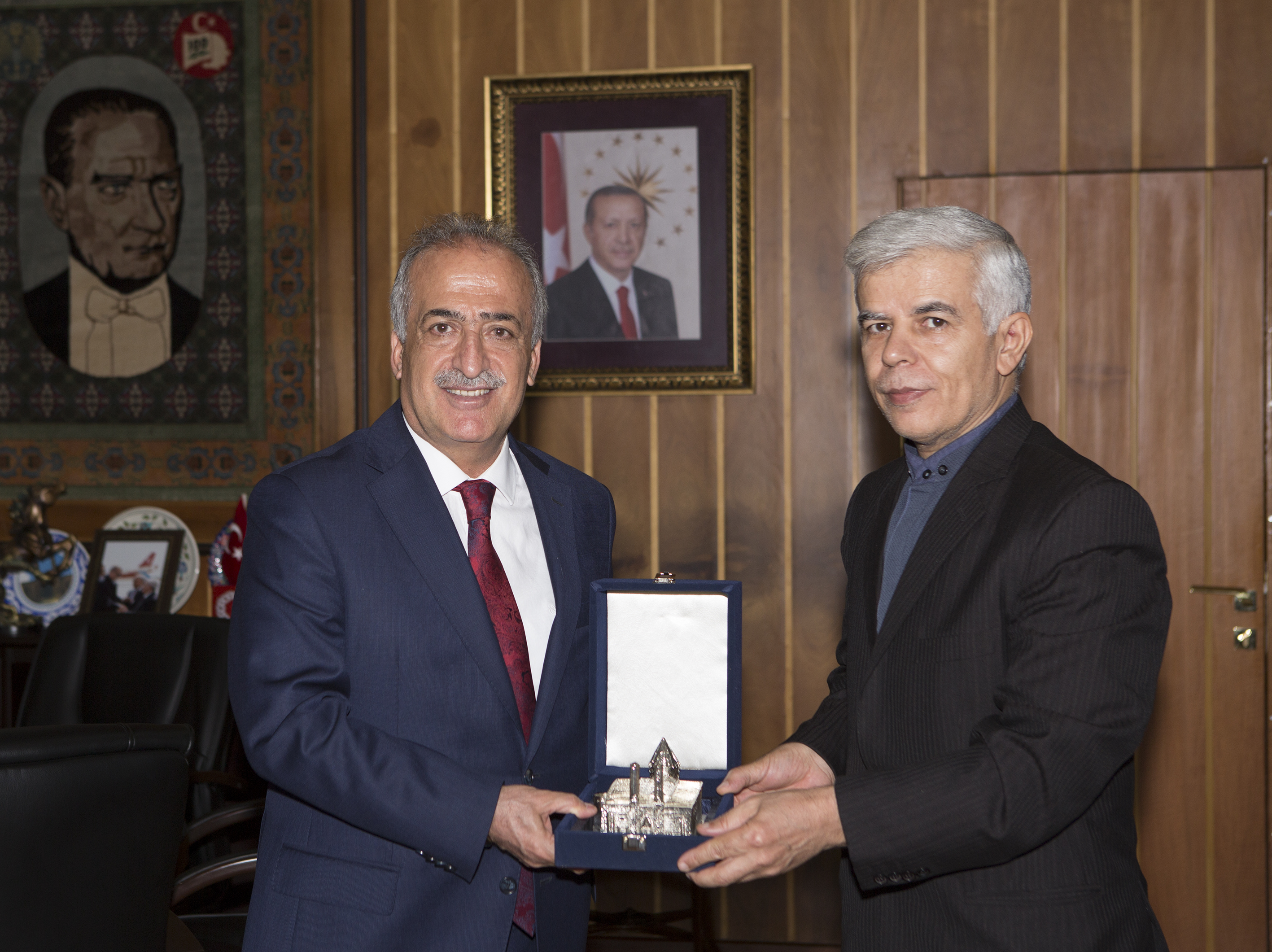 Görev süresi dolan İran Başkonsolosu Hüseyin Kasımi ve Kültür Ataşesi Hasan Didban, Atatürk Üniversitesi Rektörü Prof. Dr. Ömer Çomaklı’ya veda ziyaretinde bulundu.