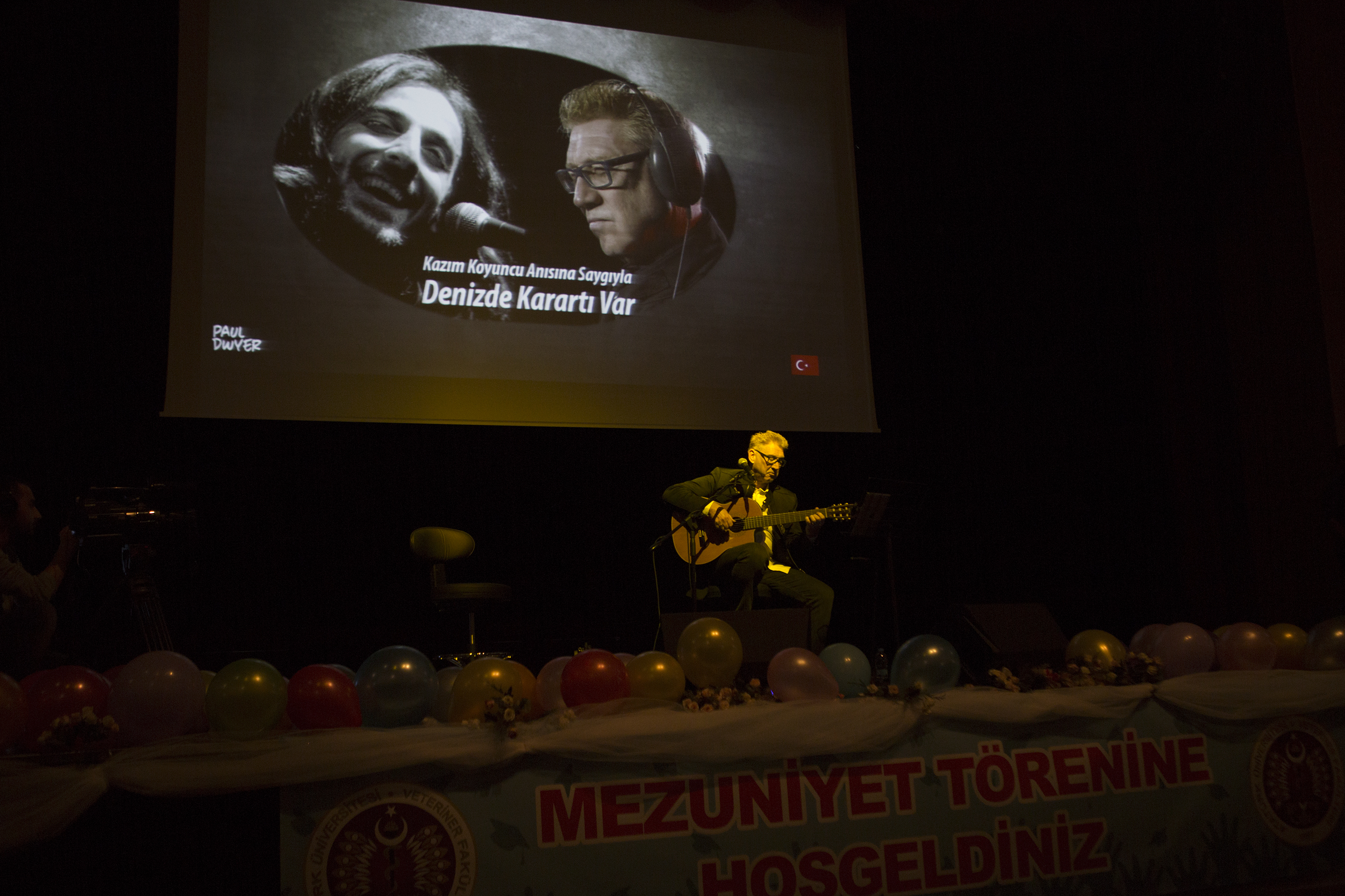 Türkiye'de 75 il gördüğünü ve dört sene boyunca Anadolu’yu gezerek müzik programları yaptığını dile getiren Paul, her gittiği yörede oraya has bir türkü seslendirerek Türk kültürünü benimsediğini söyledi. Atatürk Üniversitesinde düzenlenen böyle bir programda yer almaktan oldukça mutlu olduğunu söyleyen Paul Dwyer, öğrenciler ile bir araya geldiği her konser öncesi heyecanlandığını ifade etti. Sohbet havasında geçen ziyarette Paul, Veteriner Fakültesinin hazırlamış olduğu bu buluşmaya, sağladığı katkı ve göstermiş olduğu misafirperverliğinden dolayı Rektör Çomaklı’ya teşekkürlerini iletti.