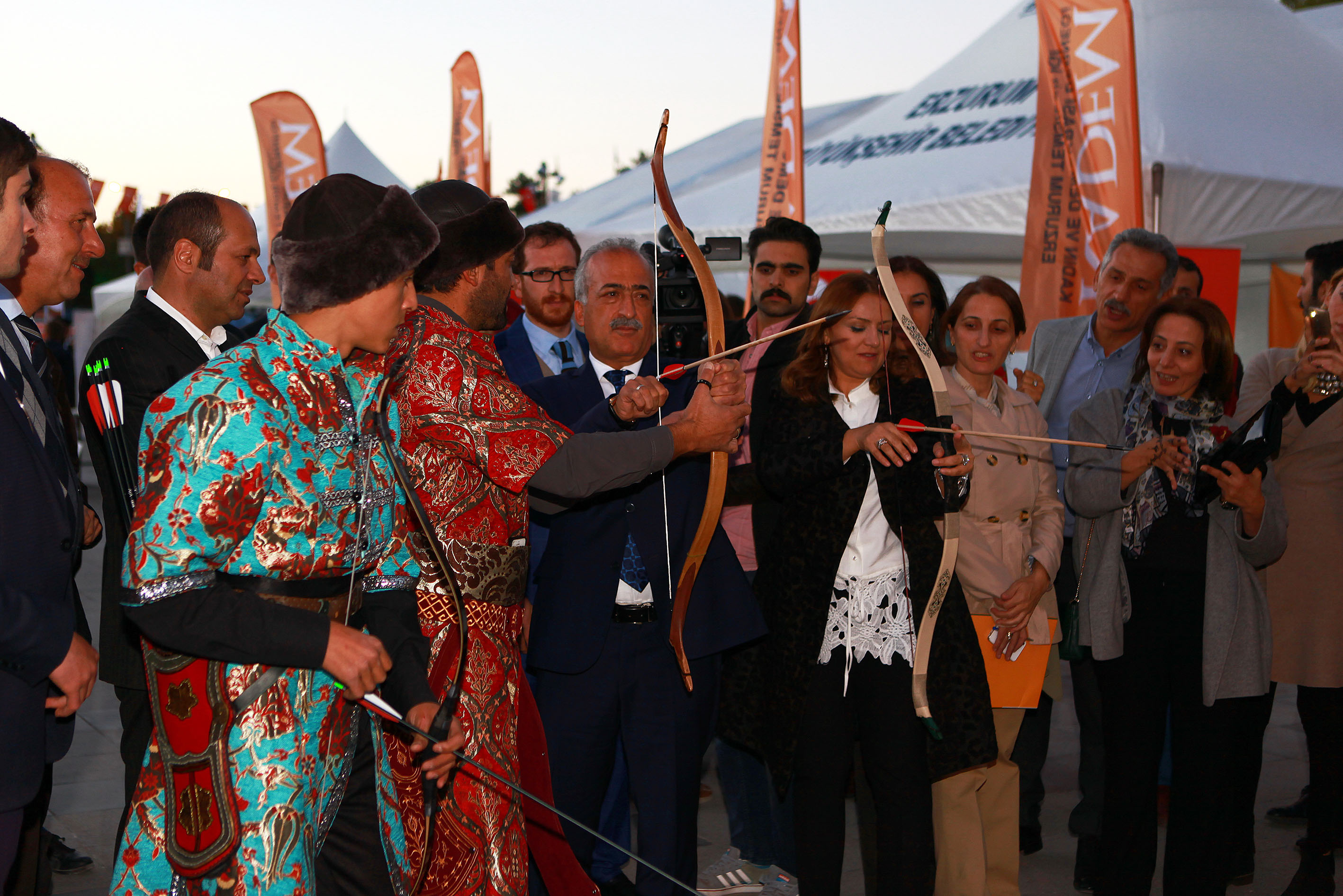 Ziyarettin ardından Direnişten Dirilişe Gençlik Fuarı’nı gezen Rektör Çomaklı ve E. Sare Aydın Yılmaz, Erzurum Spor Lisesi Okçuluk Takımıyla ok attılar.