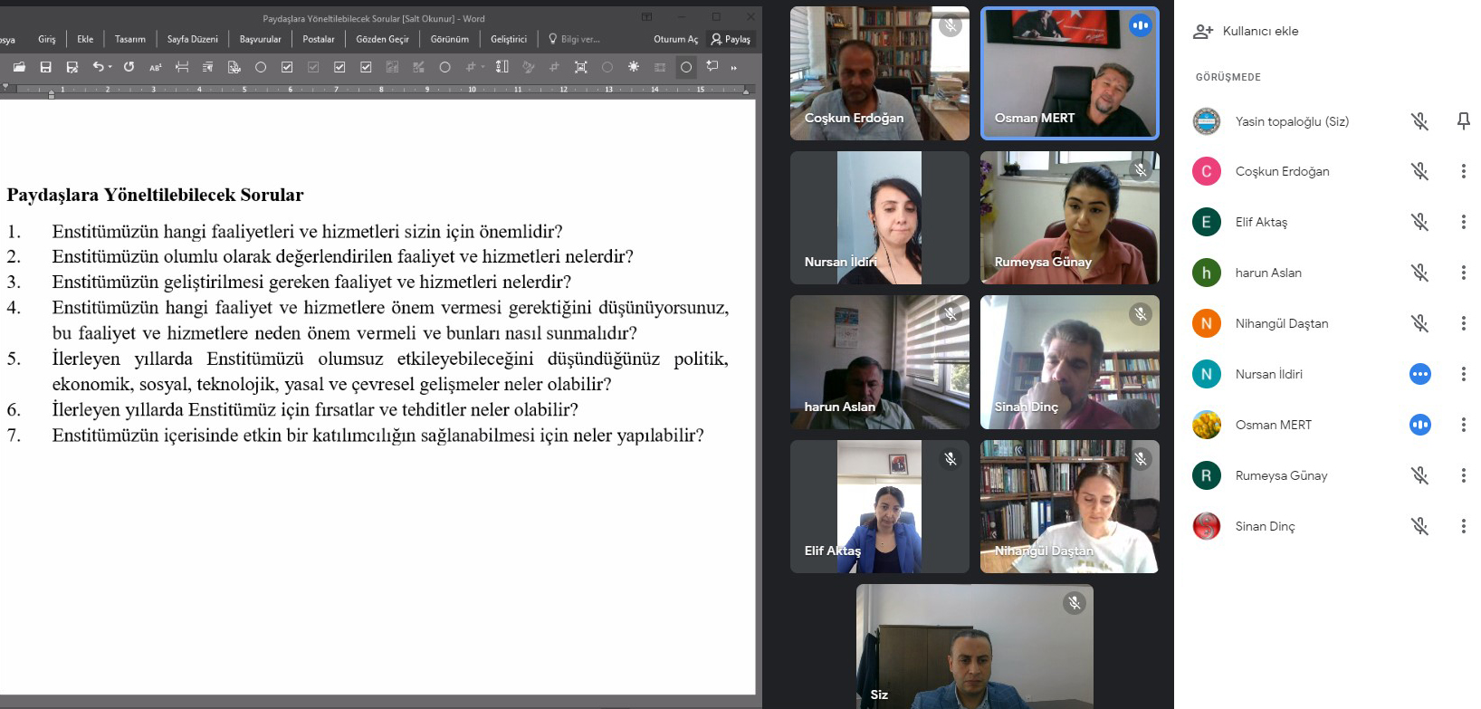 Enstitümüz Kalite Komisyonu’nun fikir görüş ve katkılarını almak üzere 17 Haziran 2021 Perşembe günü saat 15.00'da çevrimiçi bir toplantı gerçekleştirildi.