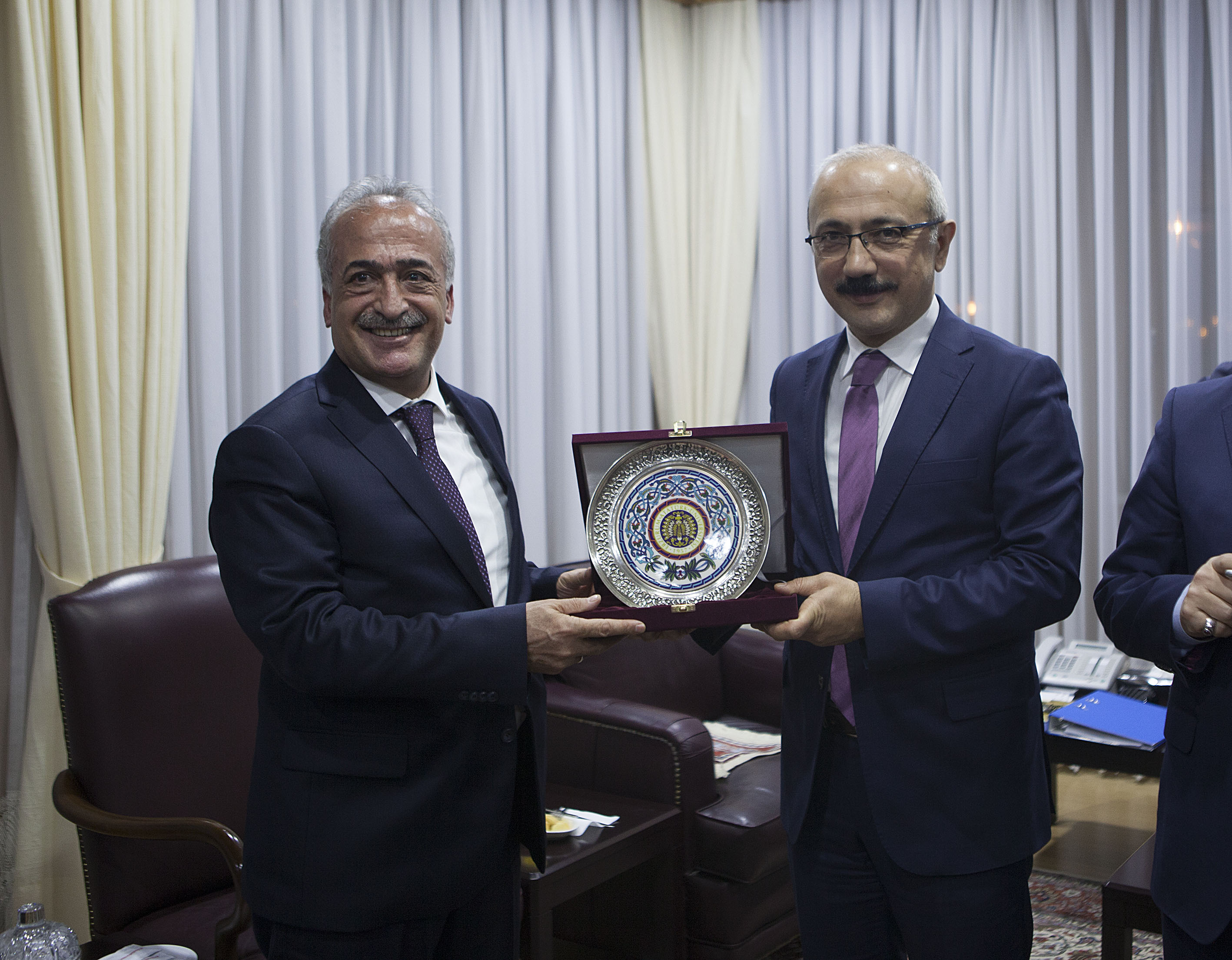 Hizmet binasının açılışının ardından iki bakan, Atatürk Üniversitesi Rektörü Prof. Dr. Ömer Çomaklı’yı makamında ziyaret ettiler.