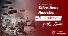 "Ülkemizin vazgeçilmez, milli bir davası olan Kıbrıs'ta hazin ve elim hadiseler sonucunda şehit edilen Kıbrıs Türklerine ve Kıbrıs’a huzur ile barışı getirmek amacıyla 20 Temmuz 1974'te düzenlenen Kıbrıs Barış Harekâtı, 45 yıldır adada sulhu ve bağımsızlığı hâkim kılmaktadır.
