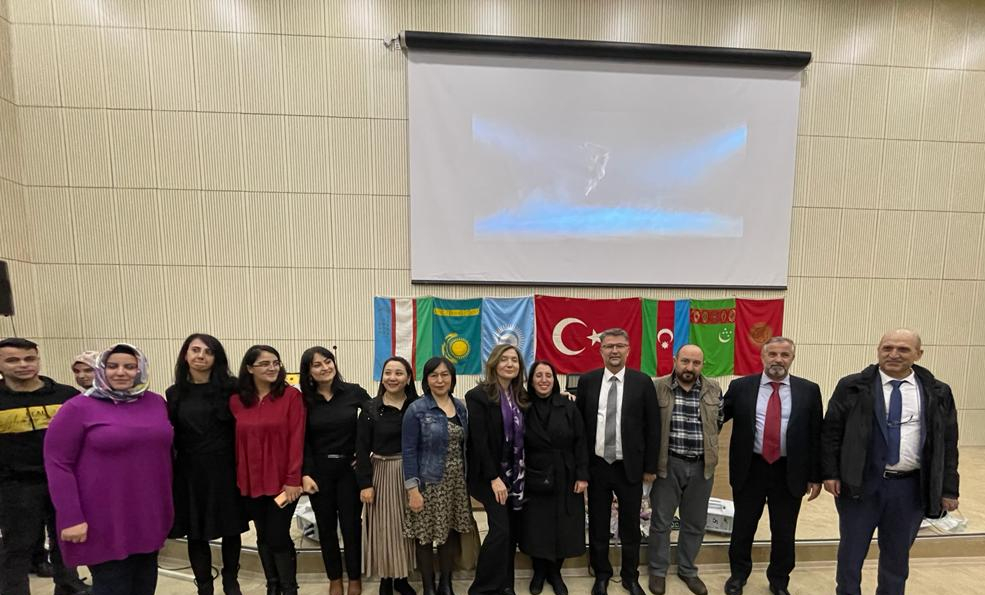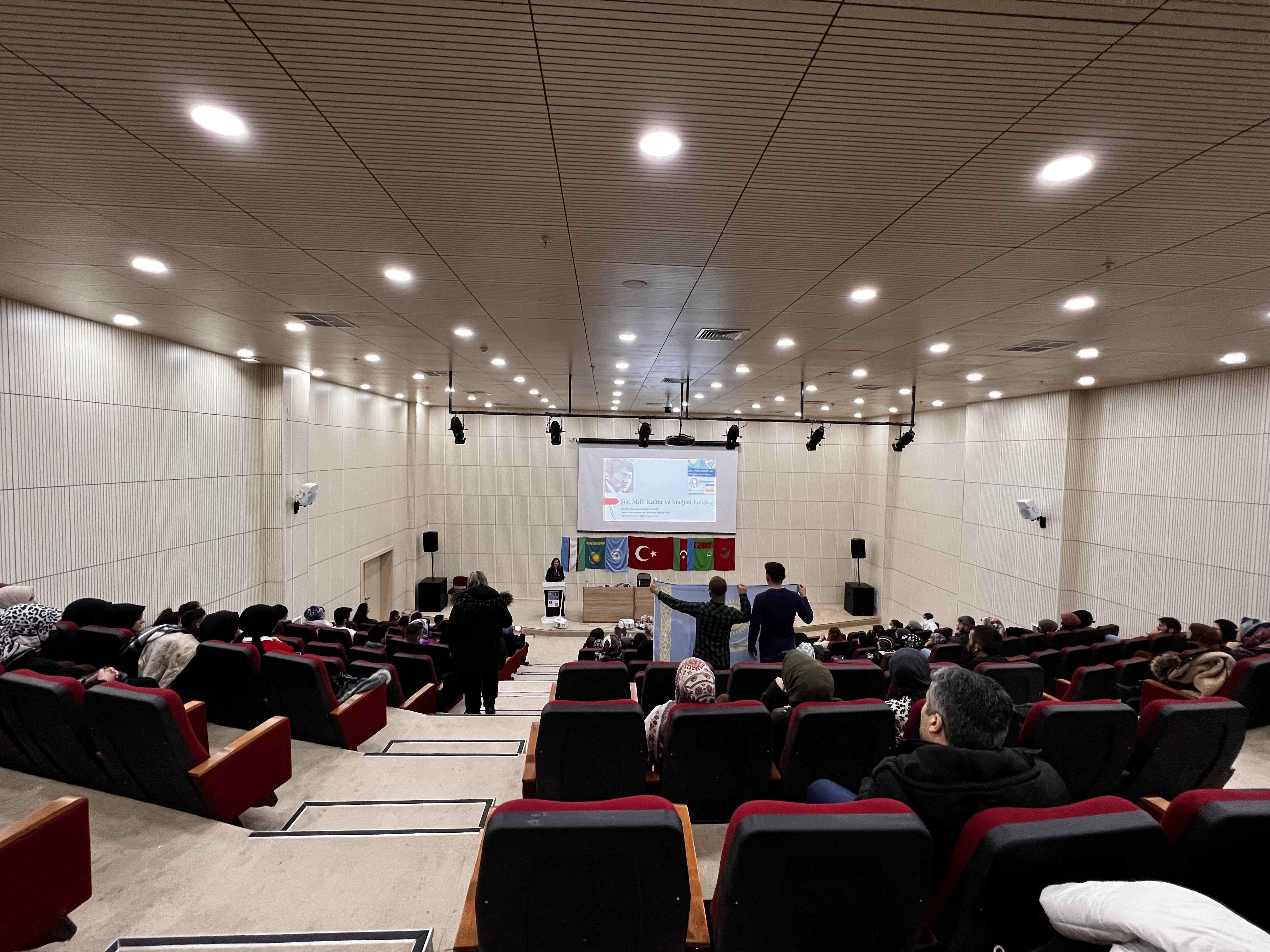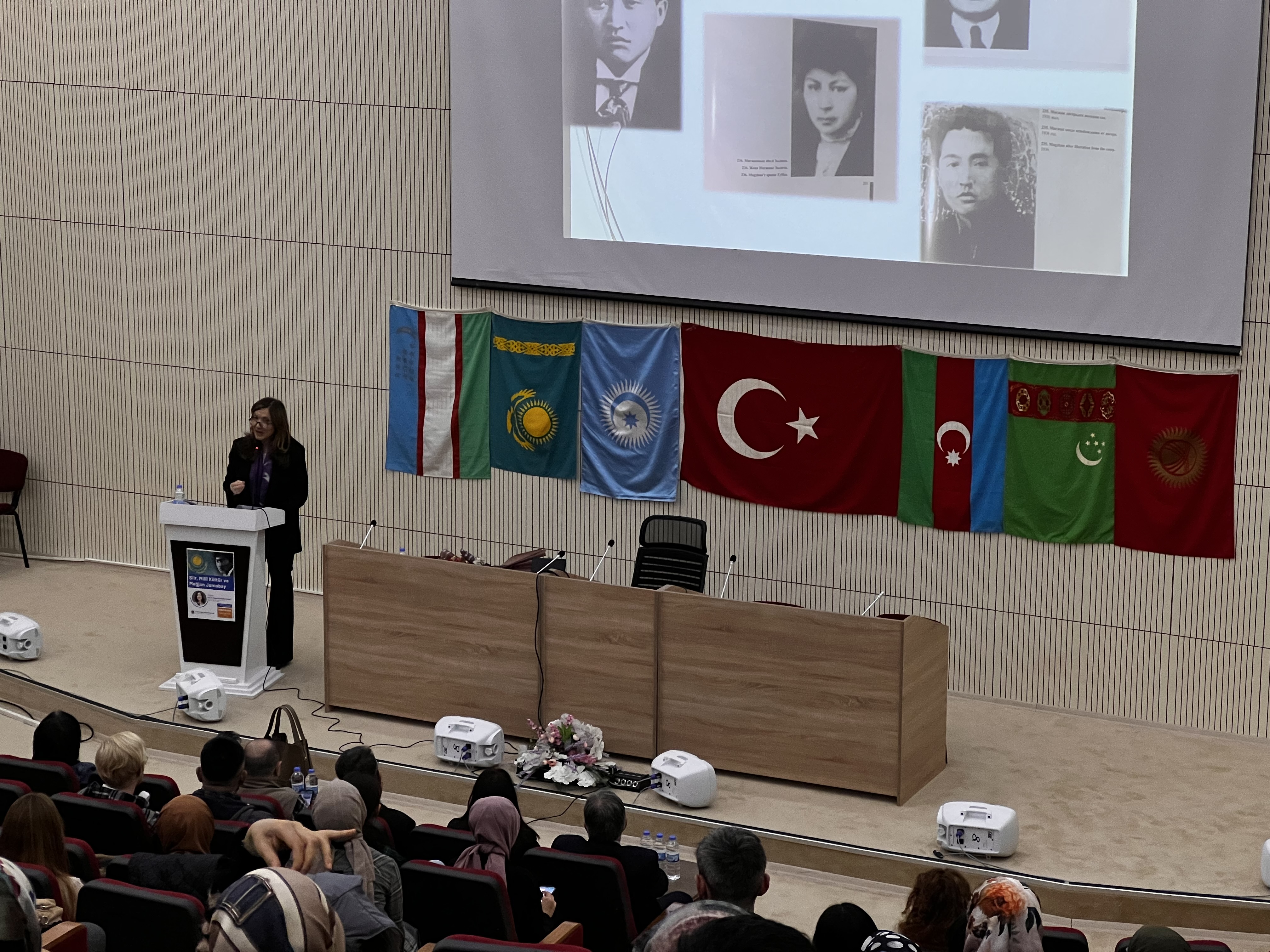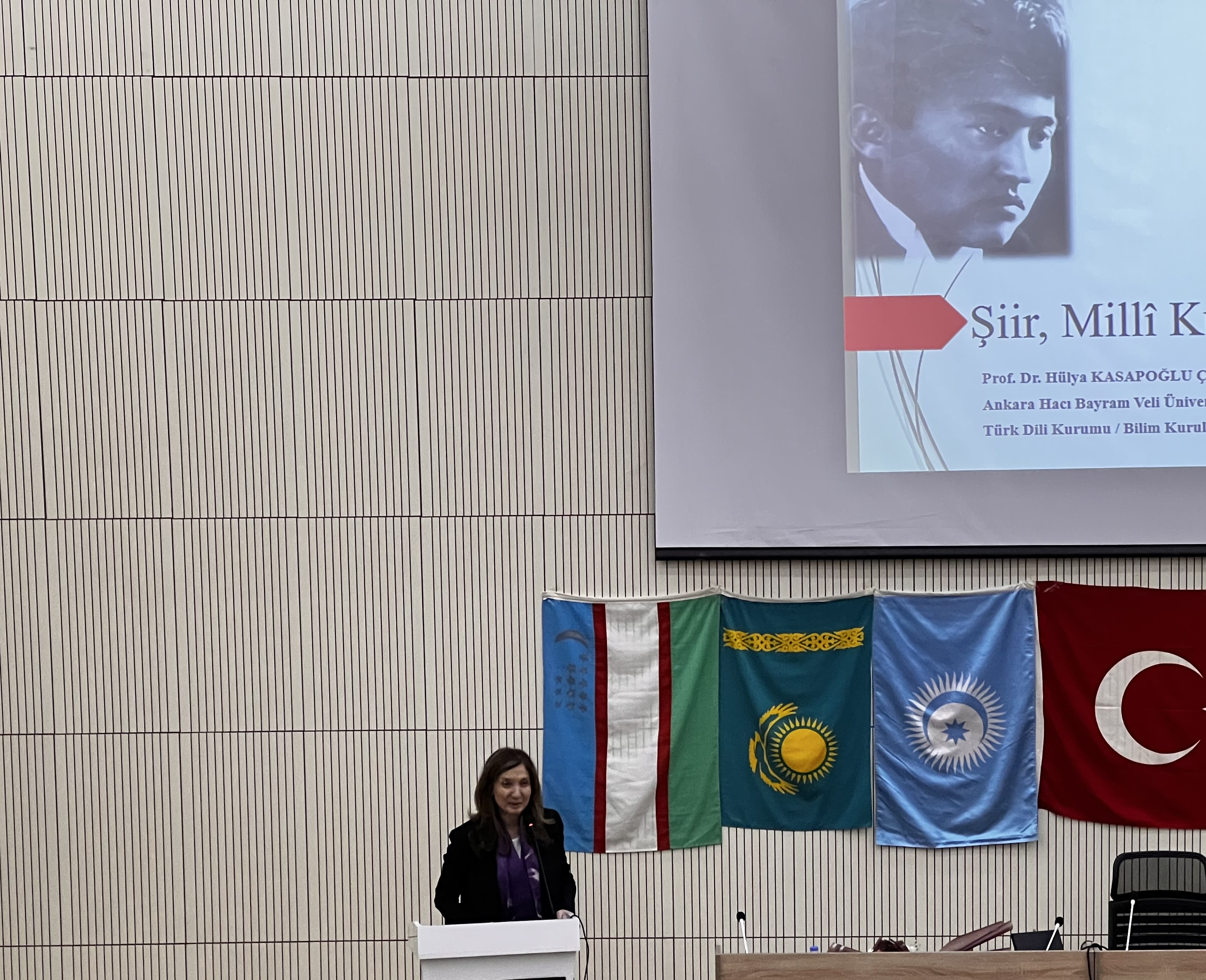 Enstitümüzün davetlisi olarak Ankara Hacı Bayram Veli Üniversitesi öğretim üyesi ve Türk Dil Kurumu Bilim Kurulu Üyesi Prof. Dr. Hülya KASAPOĞLU ÇENGEL’in, 25 Mart 2022 Cuma 14:00'de Edebiyat Fakültesi Konferans Salonu’nda “Şiir, Millî Kültür ve Mağjan Jumabay” başlıklı konferans verdi. Yoğun ilgi gösterilen konferansta ÇENGEL, vatan şairi Mehmet Akif Ersoy ve Kazak millî şairi Mağjan Jumabay ekseninde Türk Dünyasında birlik, bağımsızlık ve hürriyet fikrine vurgu yaptı. Ayrıca ÇENGEL, geçmişten günümüze Türk kültüründe her daim var olan “merhamet”, “adalet” ve “özgürlük” kavramlarının önemine dikkat çekti. Konferansın sonunda Prof. Dr. Hülya Kasapoğlu Çengel’e Türkiyat Araştırmaları Enstitüsü Müdürü Prof. Dr. Osman Mert, Çağdaş Türk Lehçeleri ve Edebiyatları Bölüm Başkanı Prof. Dr. Sedat Adıgüzel ve Çağdaş Türk Lehçeleri ve Edebiyatları Bölüm Başkan Yardımcısı Doç. Dr. Mayramgül Dıykanbay tarafından plaket ve çiçek verildi.